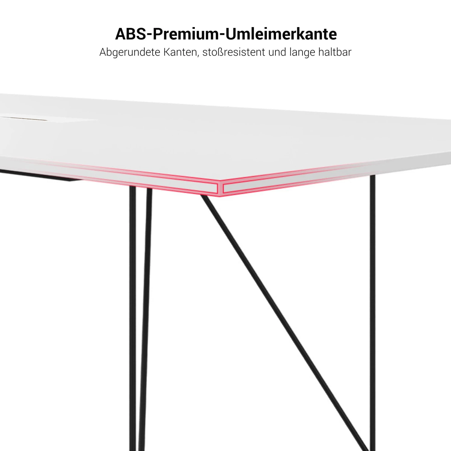 | Kante | 2 mm starke ABS-Umleimerkante, hohe Oberflächenhärte, gute Schlagfestigkeit |