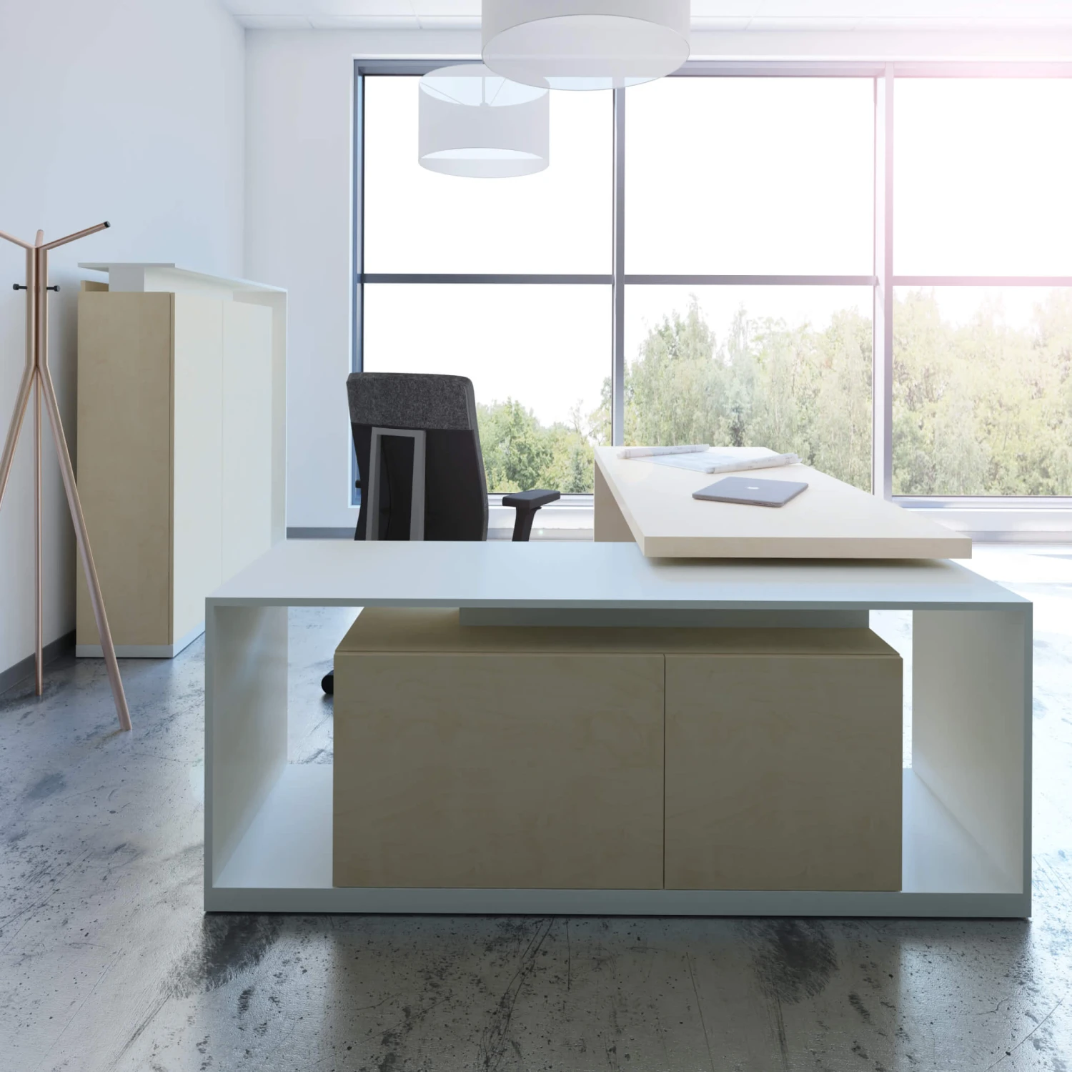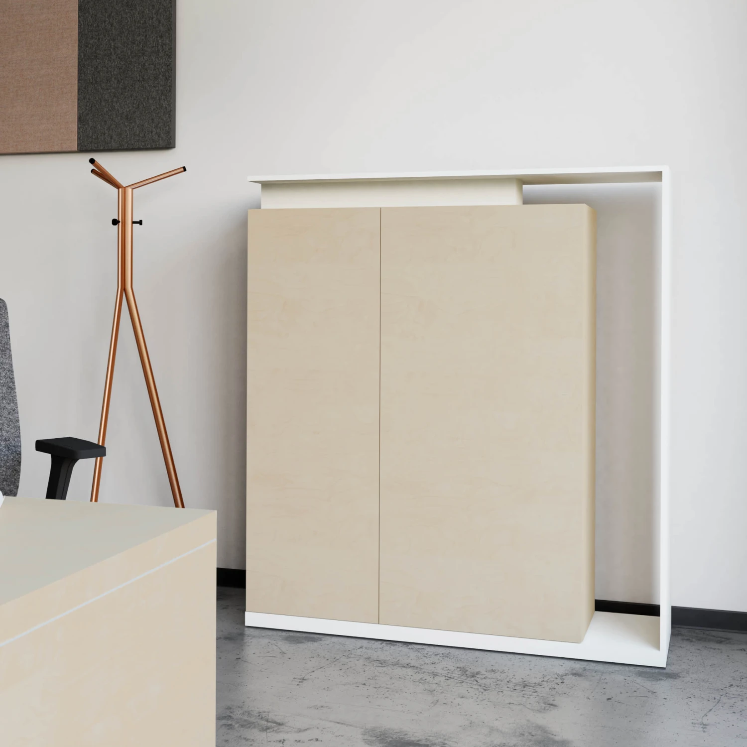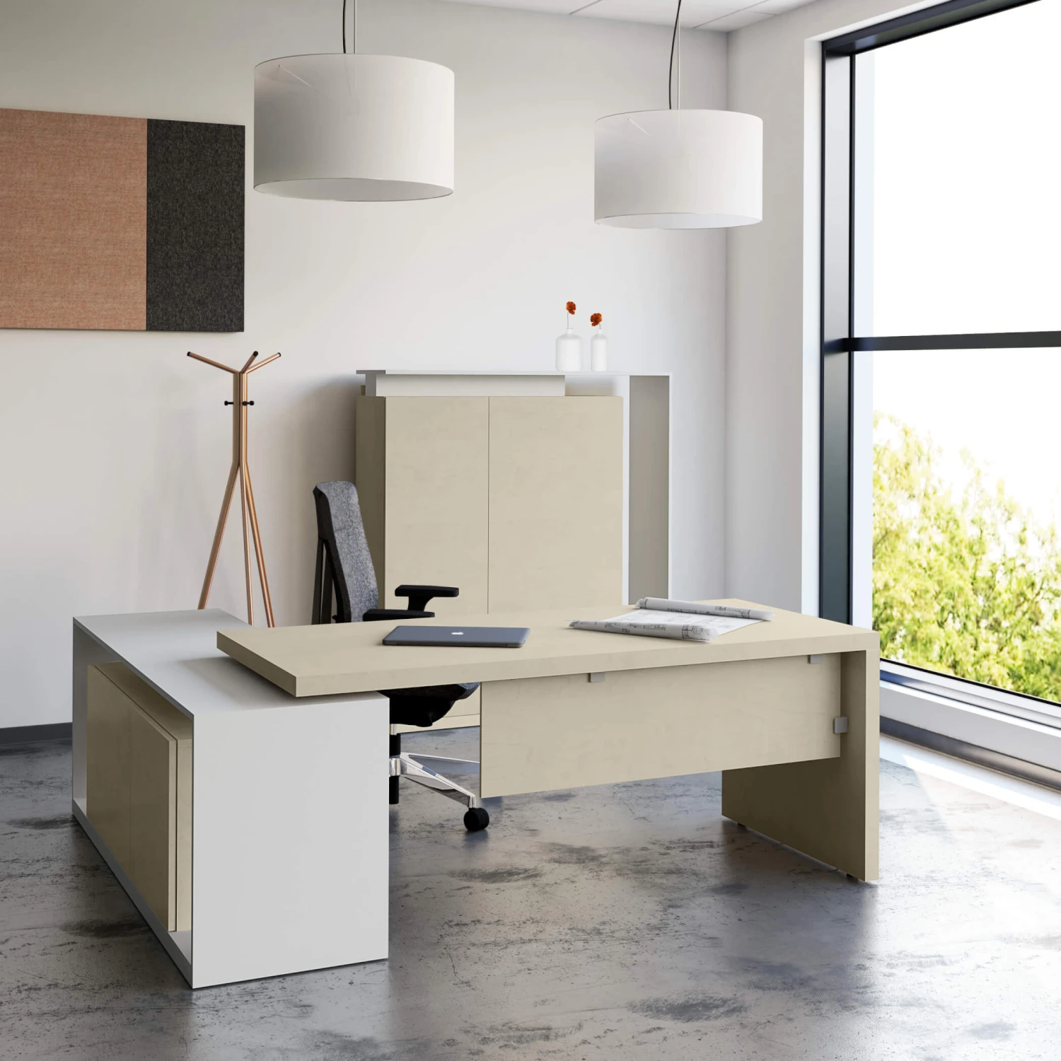 - Bestehend aus: Schreibtisch, Sideboard und Garderoben / Aktenschrank-Kombination