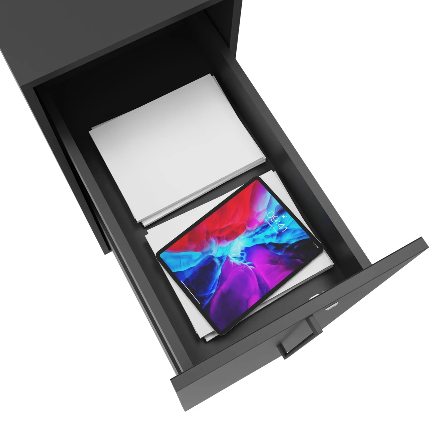 - Ordner-Fächer individuell von links oder rechts zugänglich montierbar
