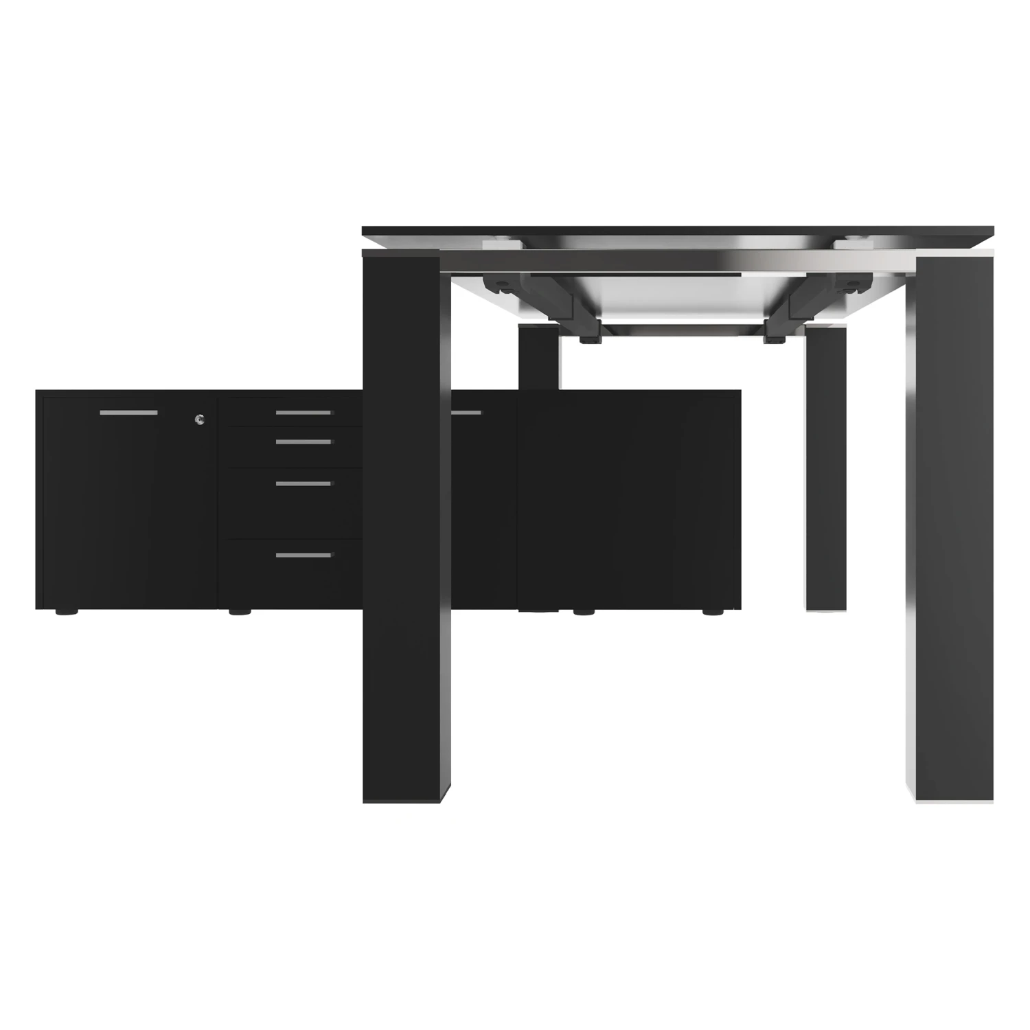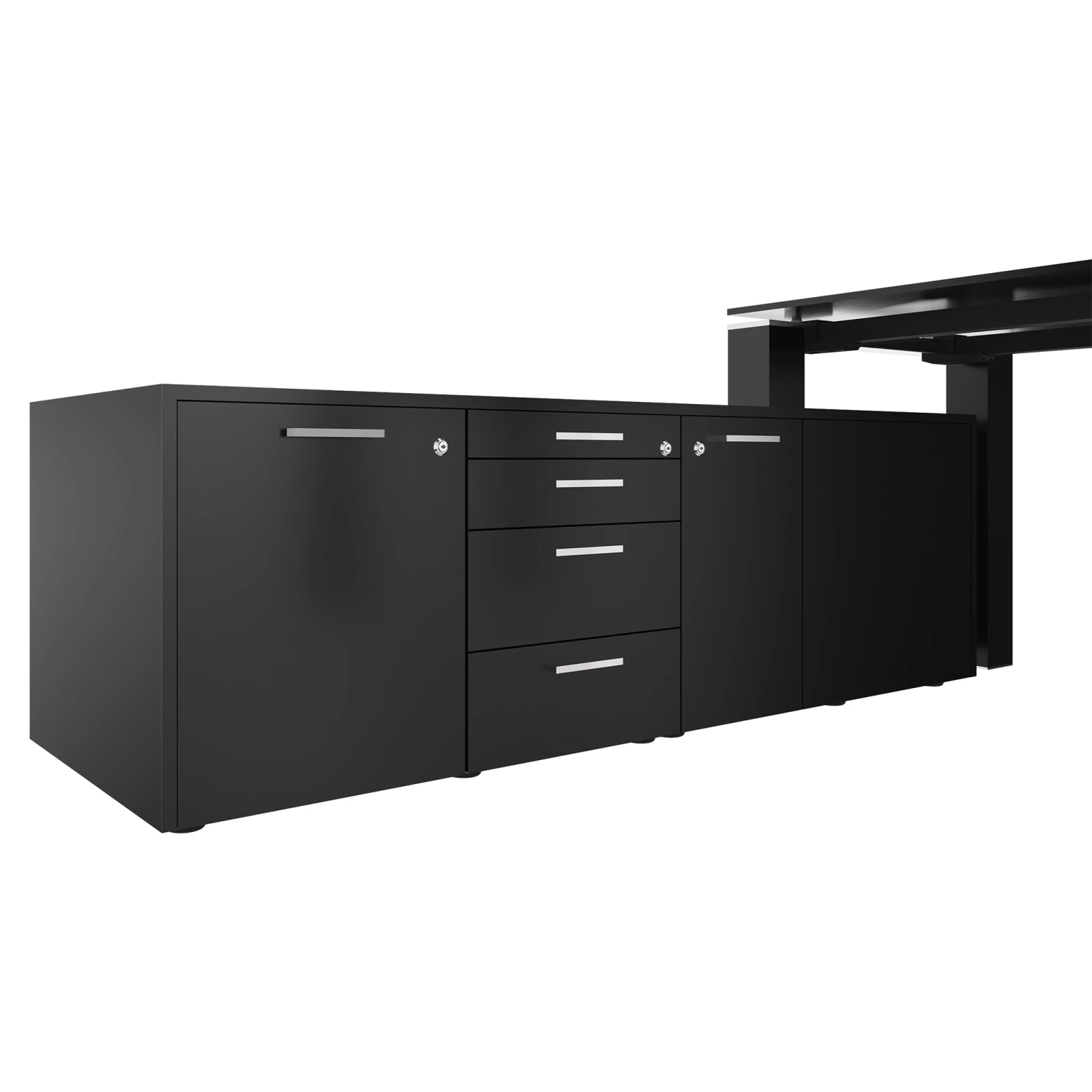 - Formschöne Acryl-Säulenbeine, in Kombination mit einem abschließbaren Lowboard
