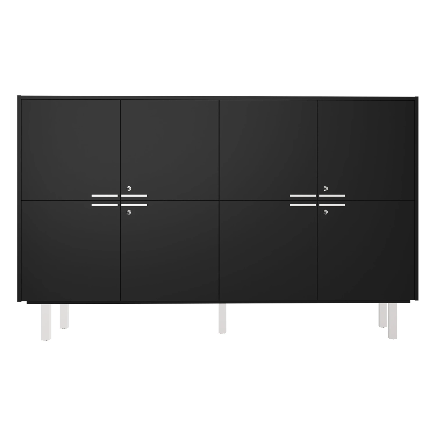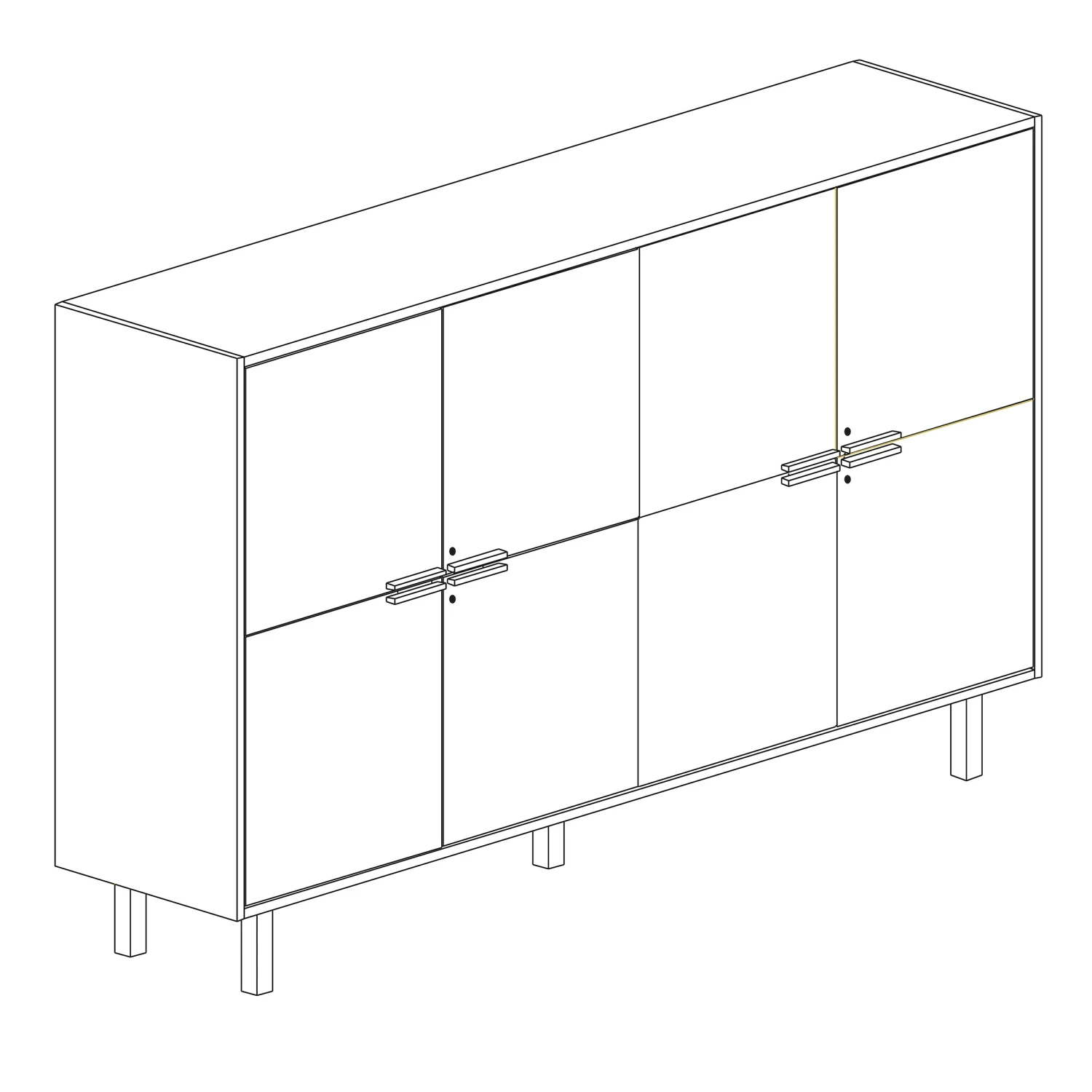 | Ausstattung | 4 Paar Flügeltüren – Soft-Close, 105 ° Öffnung, abschließbar, korrosionsschutzbehandelte Scharniere, Kunststoffgriffe (ABS) in Chrom-Optik, 4 Einlegeböden (durchgängig pro Flügeltür-Paar) |