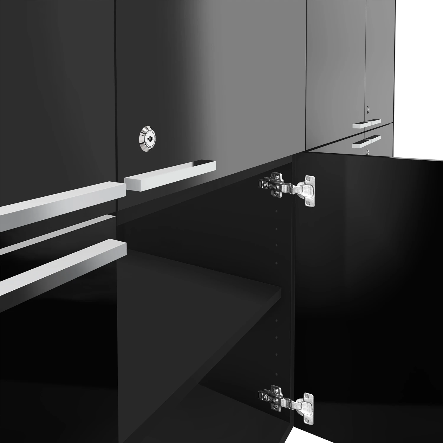 | Beschichtung | kompletter Korpus + Türen mit glänzendem Acryl 90 Gloss, Untergestell aus Melamin |
