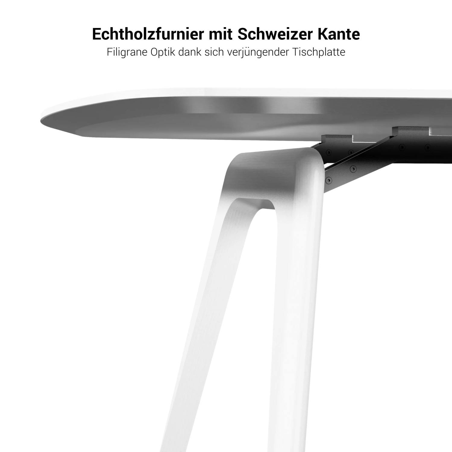- Echtholzfurnier-Tischplatte auf Eiche-Massivholztischbeinen, verbunden mit Stahl-Verbindungsträgern