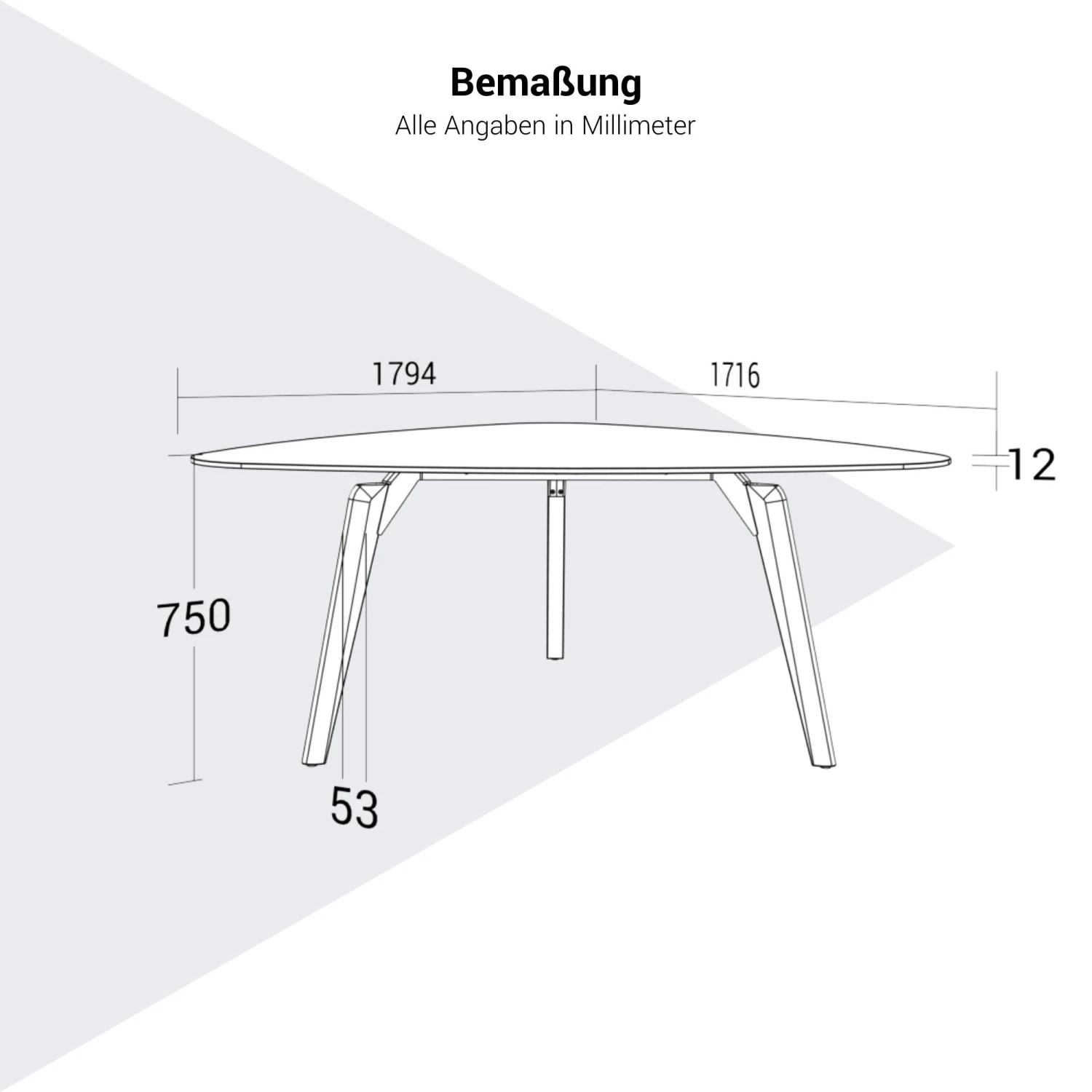 | Tischplatten-Form | Dreieckig |