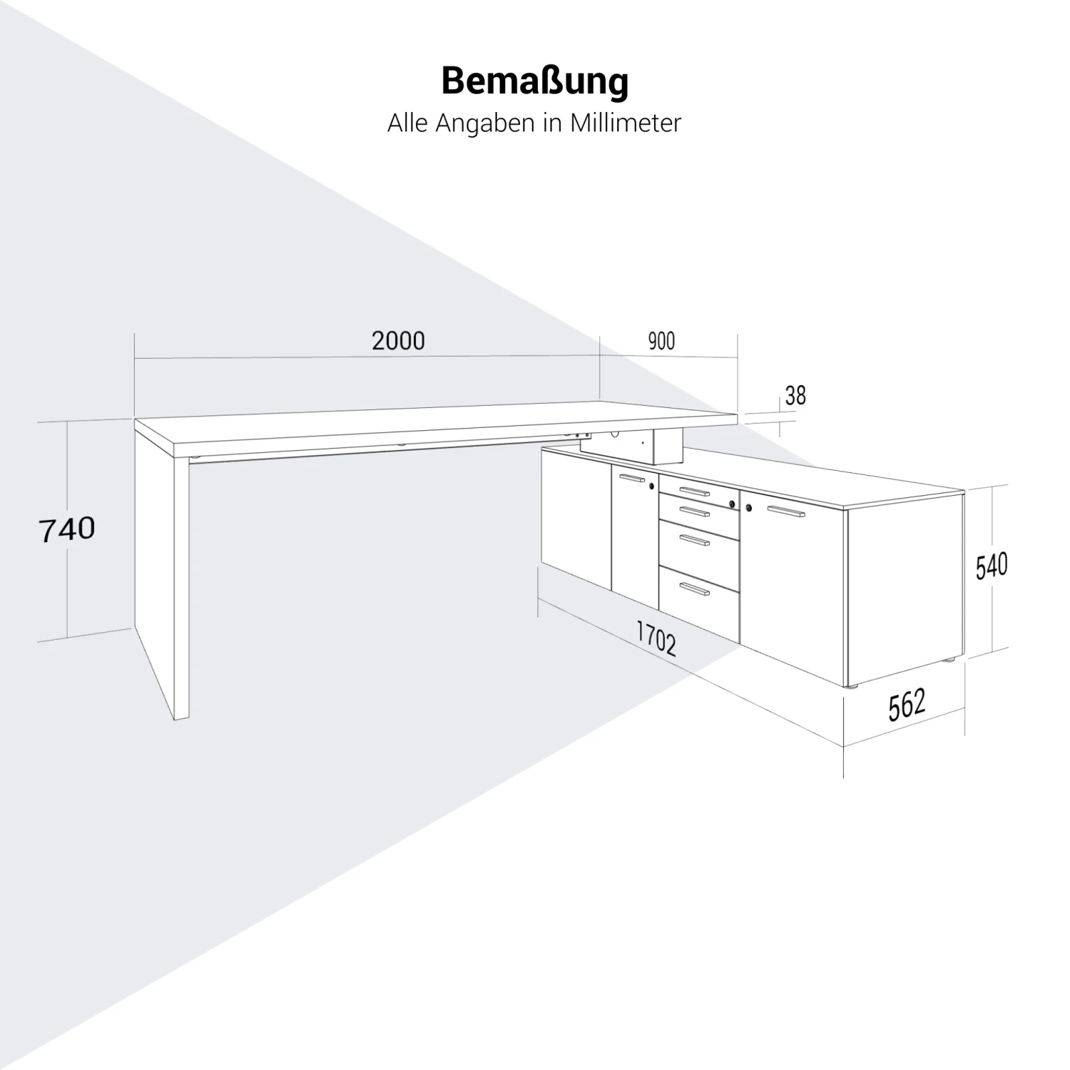 | Tischtyp | Schreibtisch mit Lowboard |
