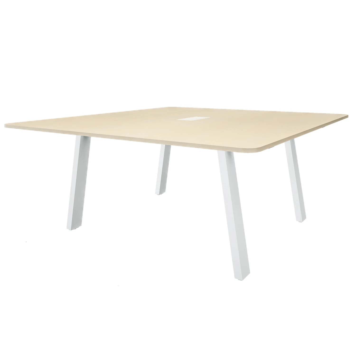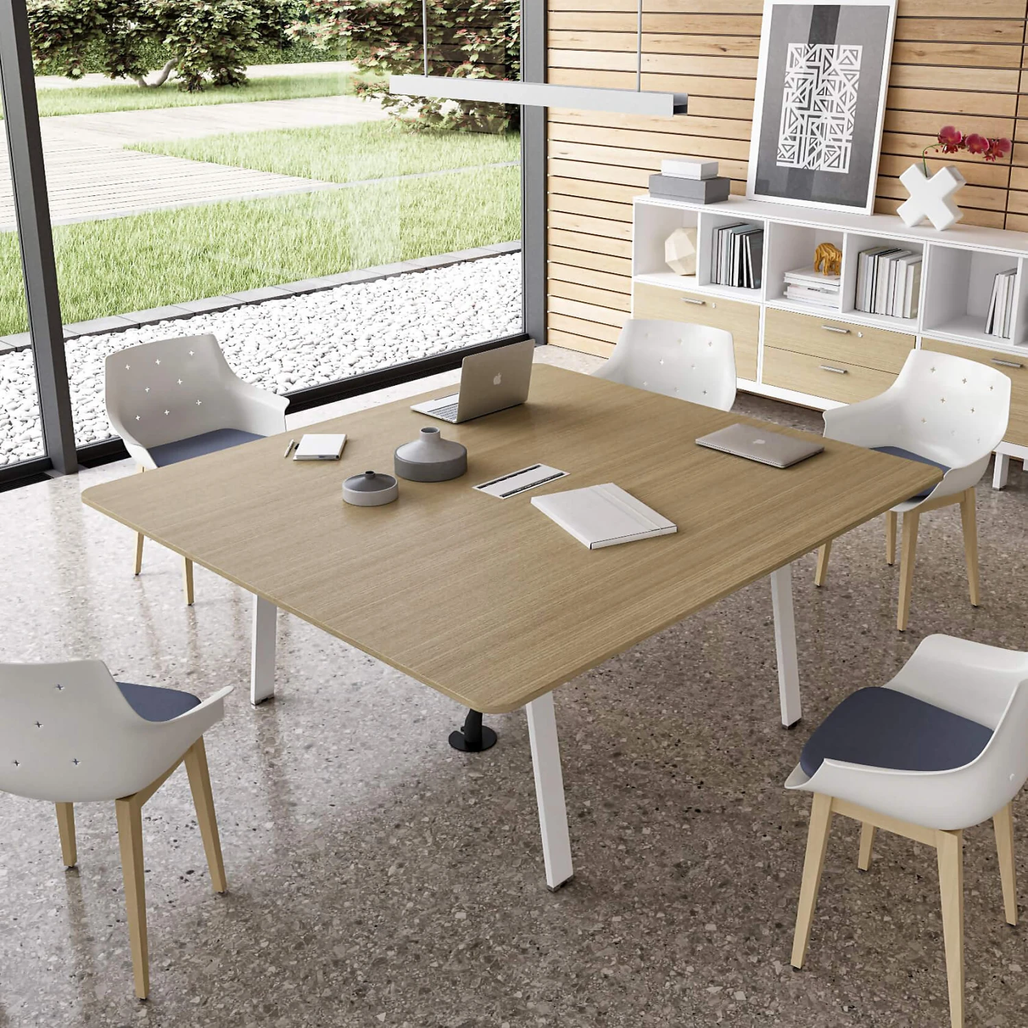 - Tischplatte mit abgerundeten Ecken wird ergänzt durch formschönes Metallgestell
