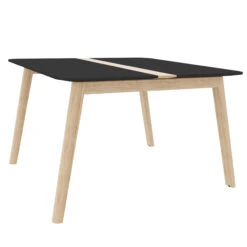 NOVA WOOD Konferenztisch | Elektrifiziert, Massivholz-Gestell, 1200 X 1200 Mm, HPL FENIX Schwarz