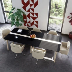 NOVA WOOD Konferenztisch | Elektrifiziert, Massivholz-Gestell, 1800 X 1200 Mm, HPL FENIX Schwarz