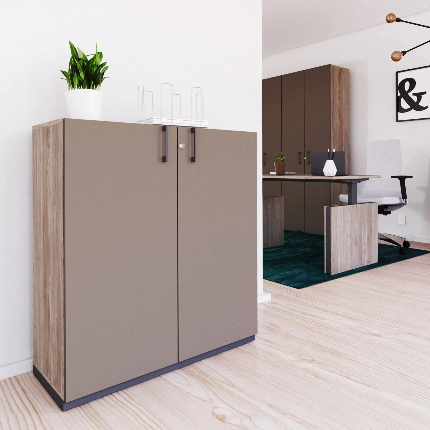 - Profi-Flügeltürenschrank mit Top-Ausstattung: Stahlsockel, ABS-Kanten und Melaminharzbeschichtung
