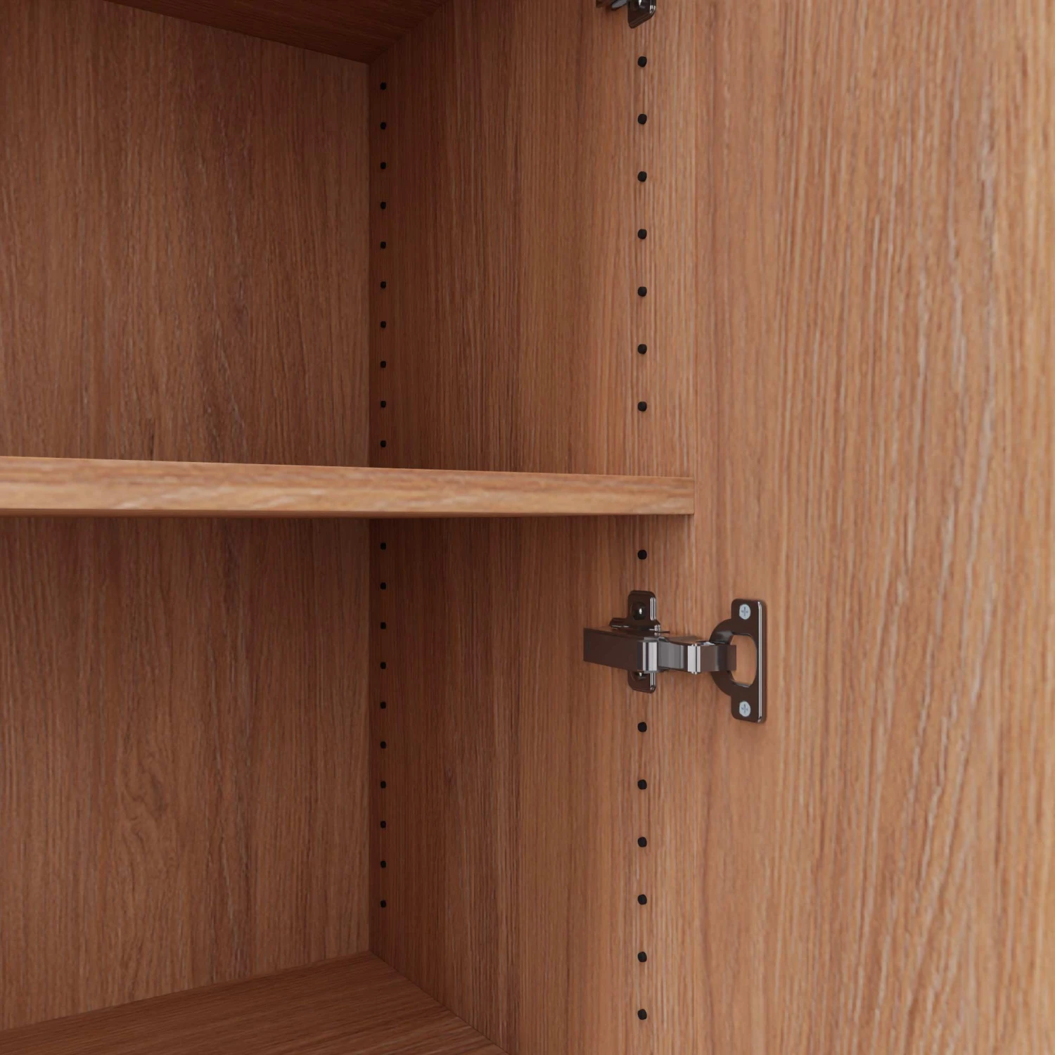| Ausstattung | 3 Fachböden, Durchgängige Lochreihenbohrung 25 mm, Flügeltüren mit Soft-Close, Marken-Scharniere von Blum®, Bügelgriffe aus pulverbeschichtetem Metall – 128 mm lang, 107° Öffnungswinkel |