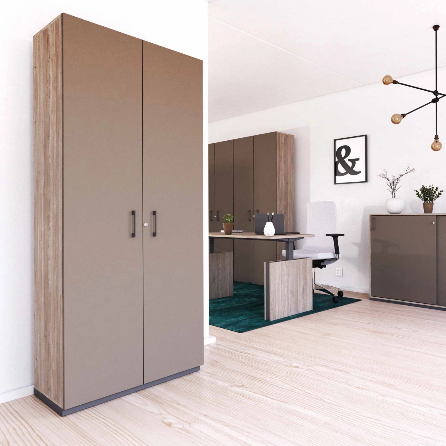 - Profi-Flügeltürenschrank mit Top-Ausstattung: Stahlsockel, ABS-Kanten und Melaminharzbeschichtung