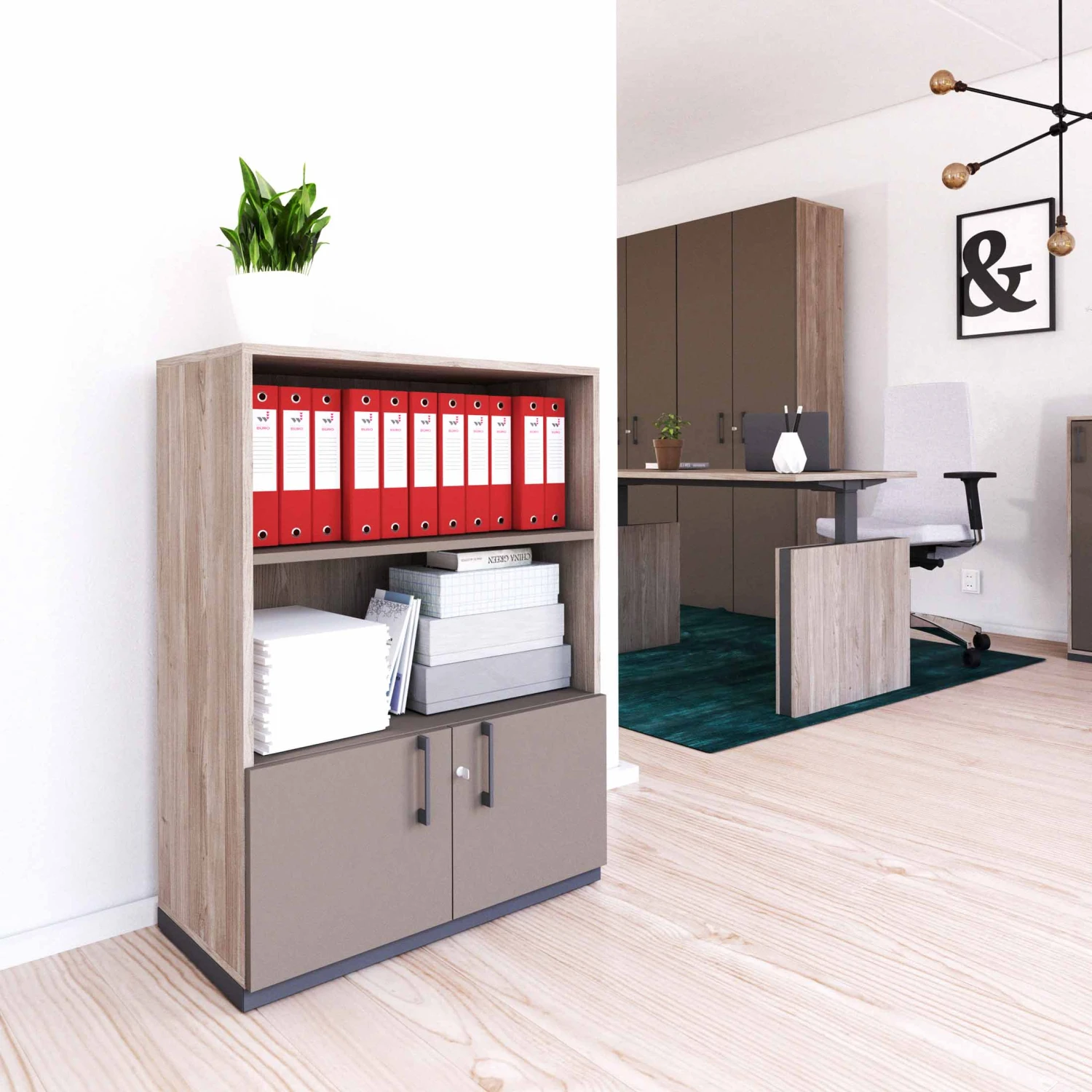 - Profi-Kombischrank mit Top-Ausstattung: Stahlsockel, ABS-Kanten und Melaminharzbeschichtung