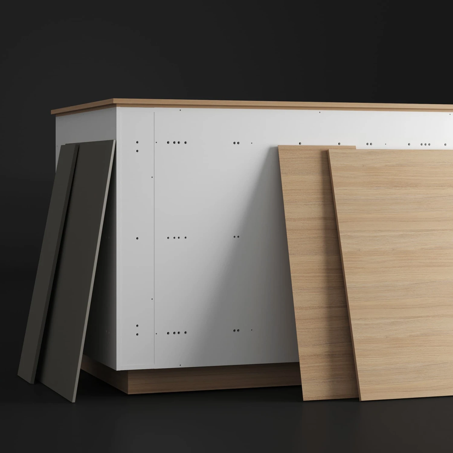 | Kante | 1-2 mm starke ABS-Umleimerkanten, hohe Oberflächenhärte, gute Schlagfestigkeit |