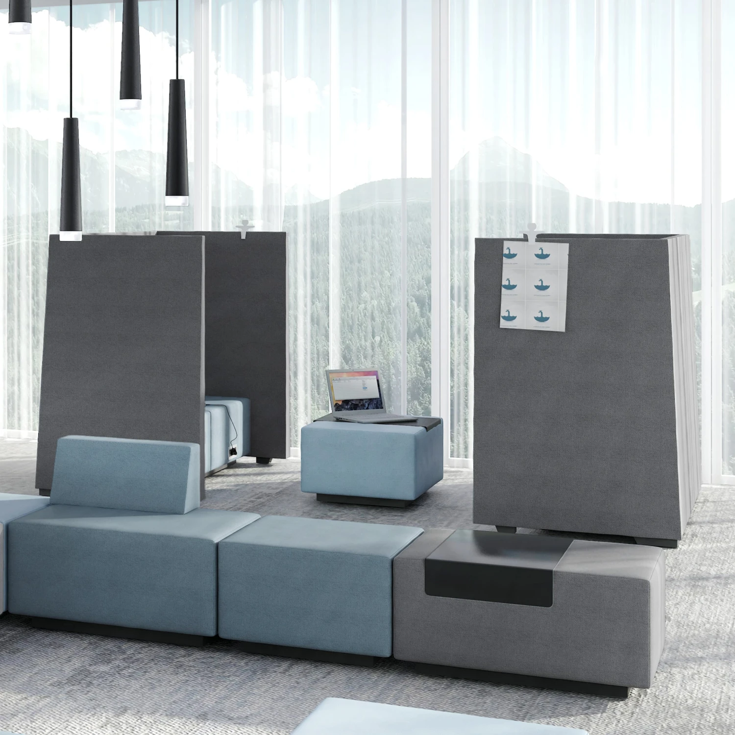 | Komplettsystem Wandverkleidung | Set Bestehend aus: 3 Akustikwänden und 2 Poufs inkl. Rückenlehne |