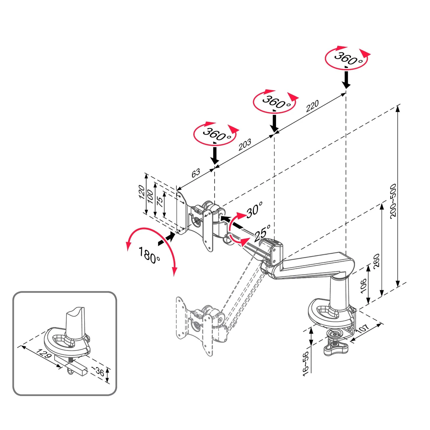 - Hochwertiger Monitorhalter zur flexiblen Einstellung der Bildschirmposition