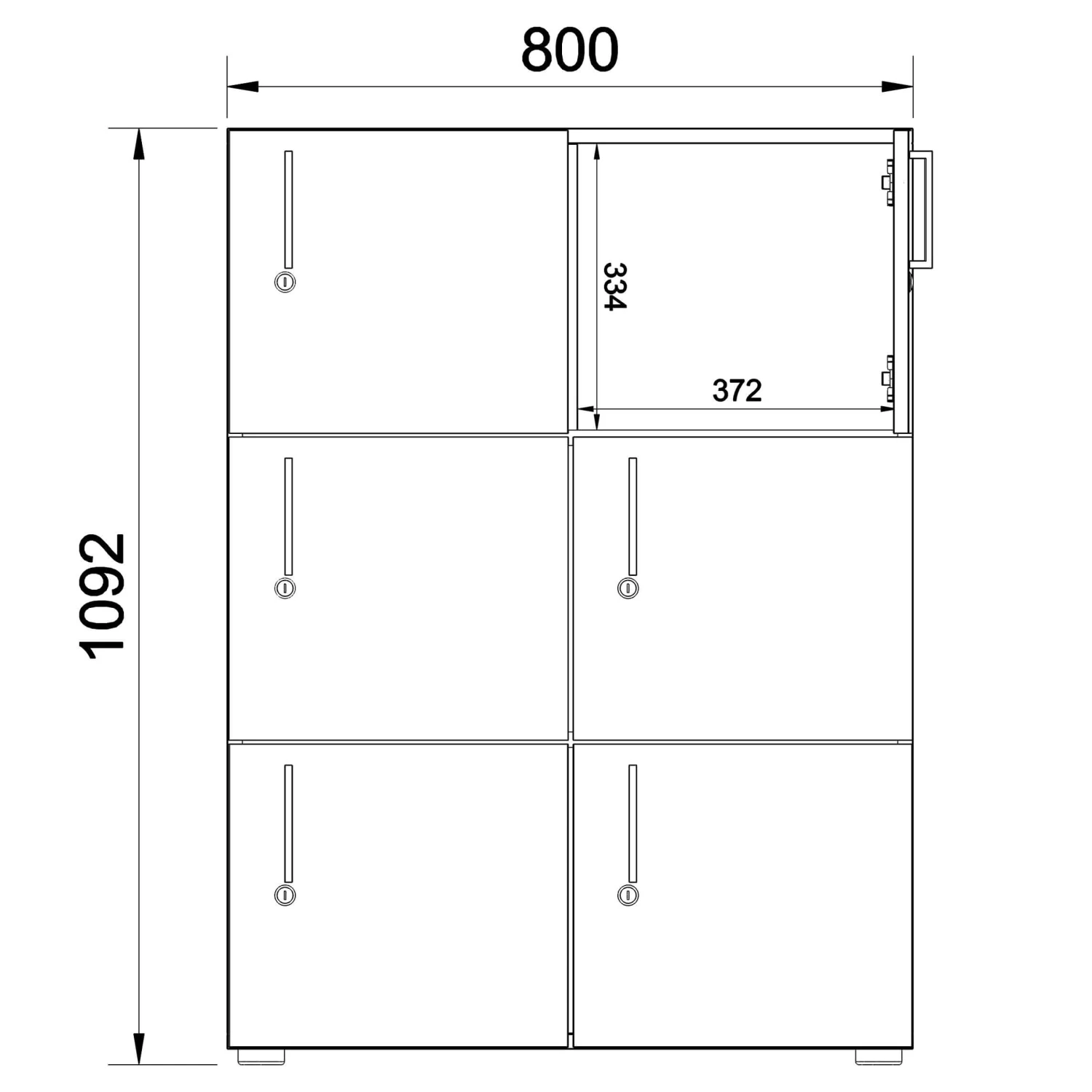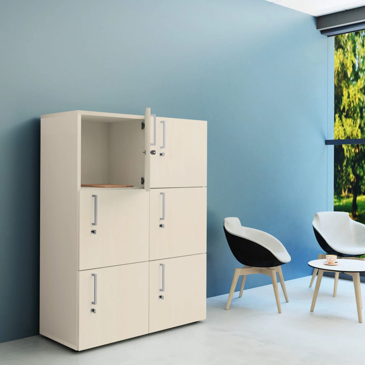 - Robuster und formschöner Spind mit 6 Schließfächern