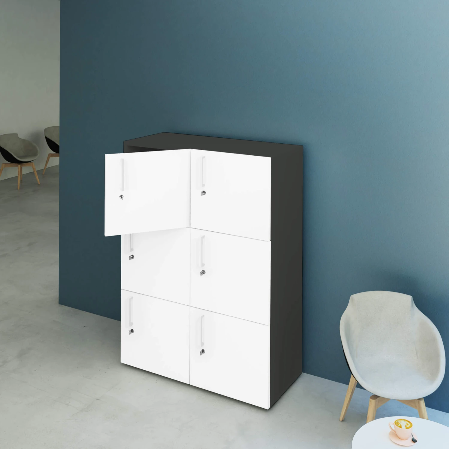 - Robuster und formschöner Spind mit 6 Schließfächern