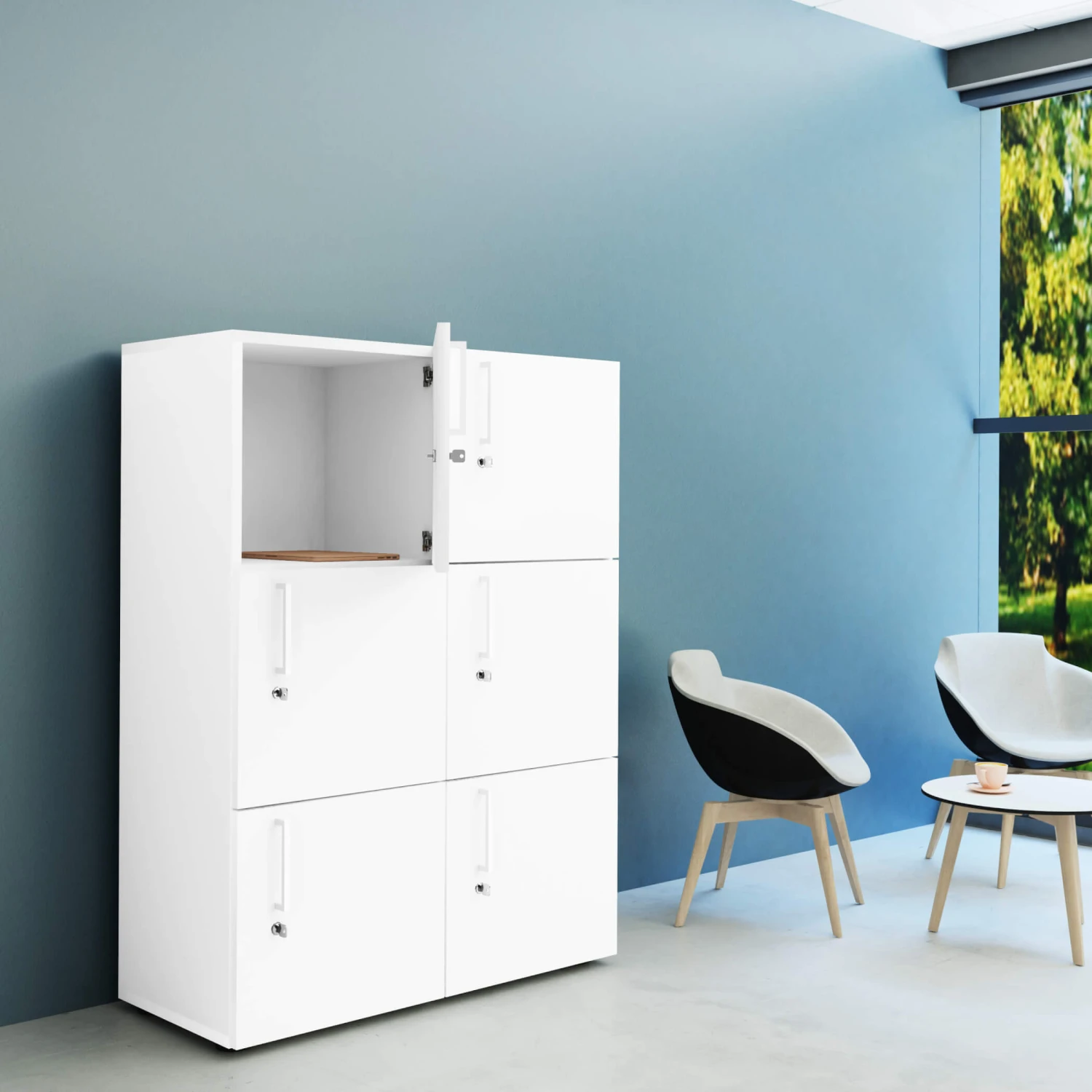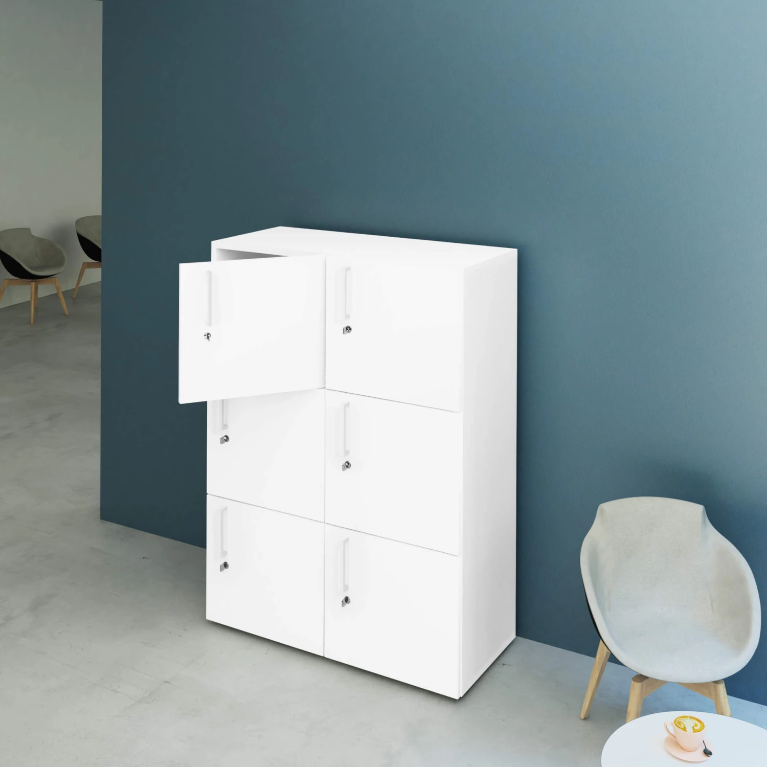 - Robuster und formschöner Spind mit 6 Schließfächern