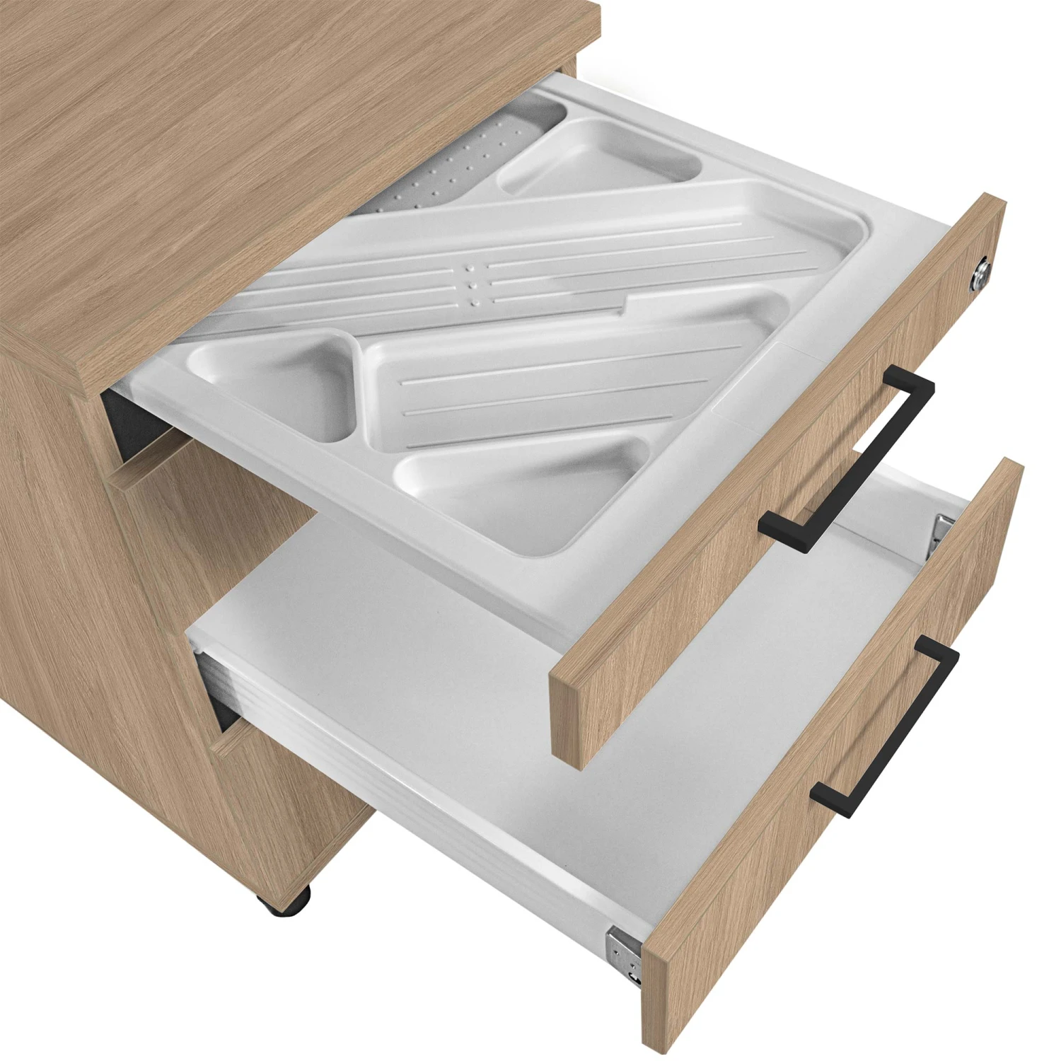 - Farbe: Korpus Bernsteineiche, Front Bernsteineiche, Griffe Schwarz