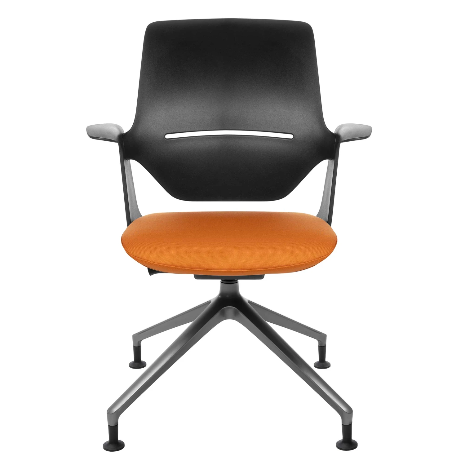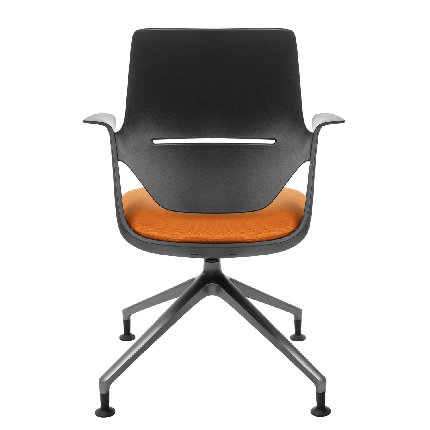 - Ergonomisch geformter Sitz aus schwarzem Polyamid mit fixierten Armlehnen