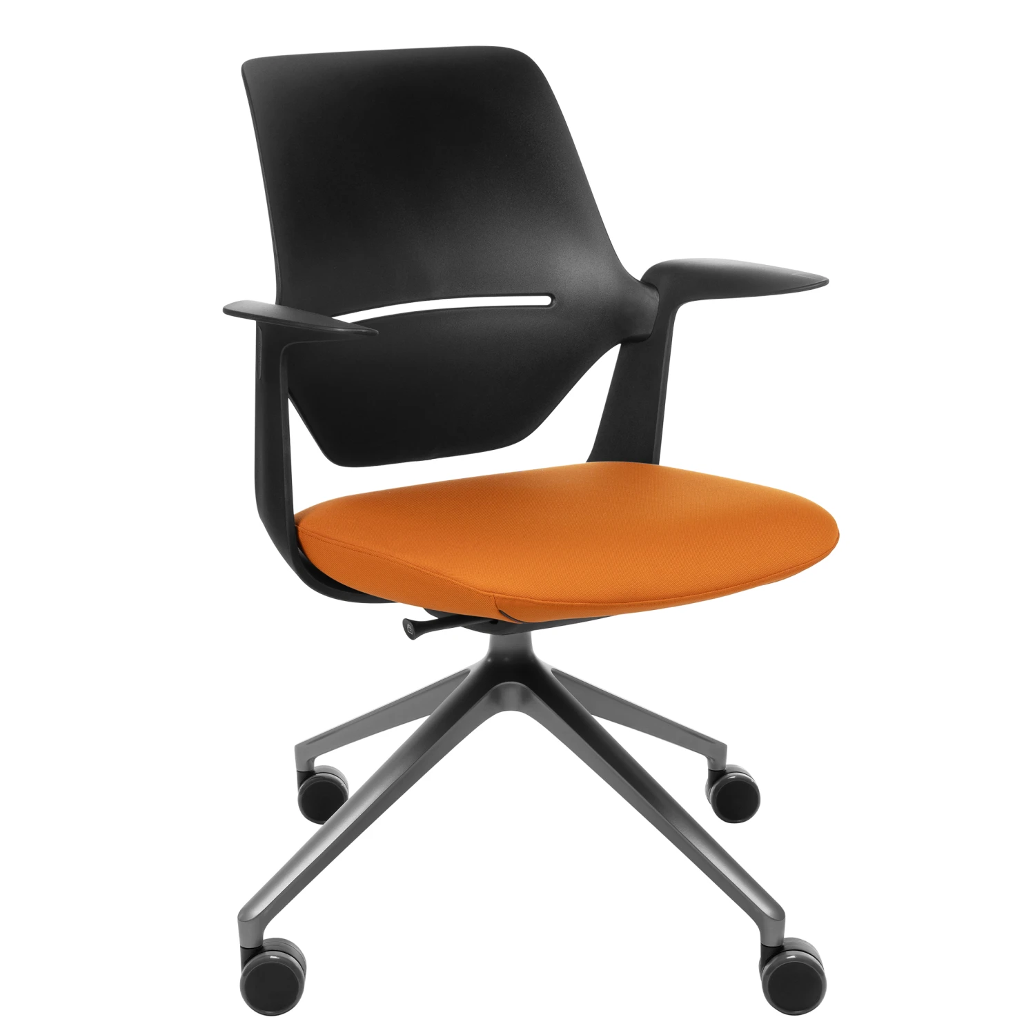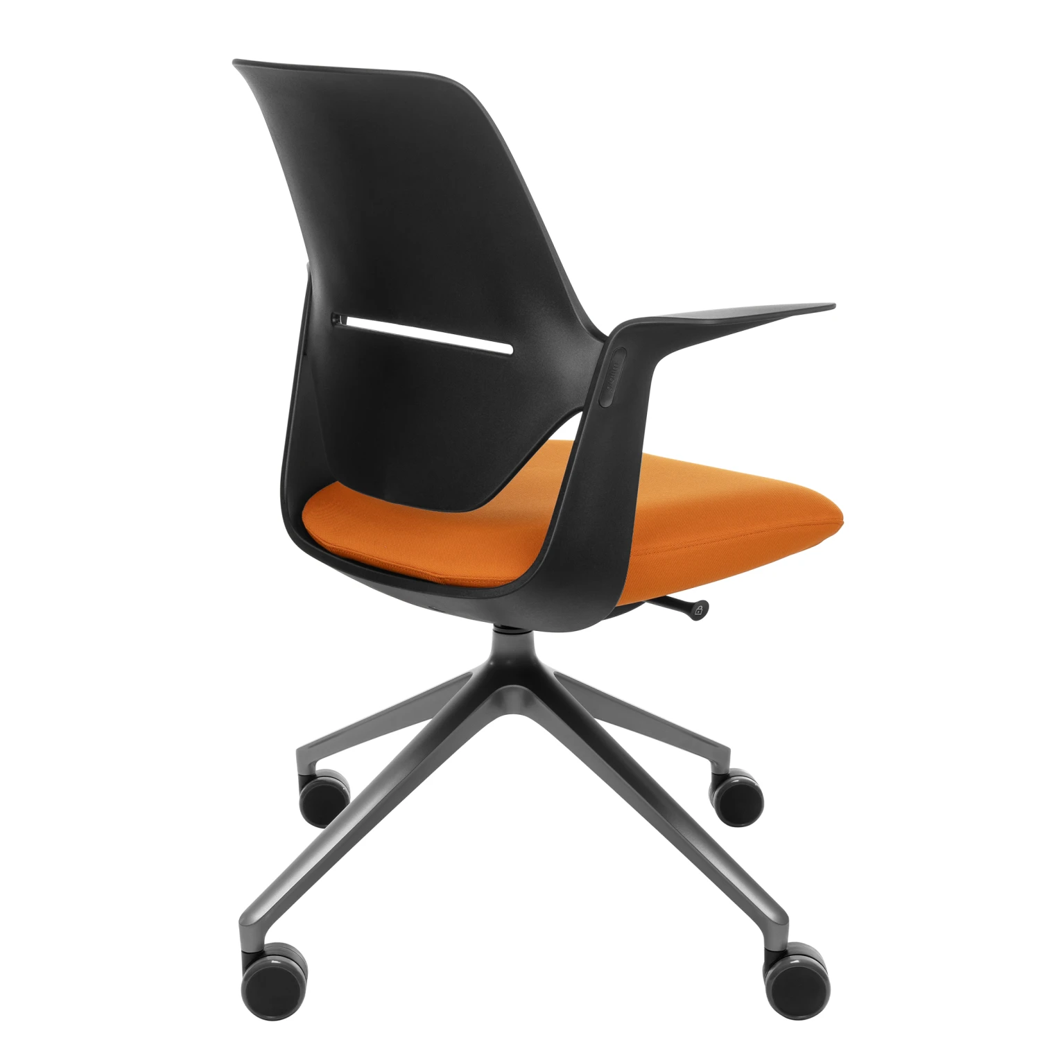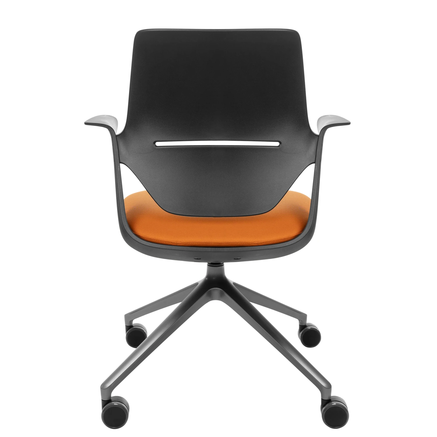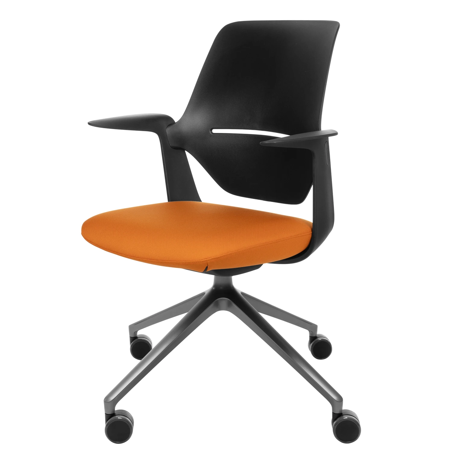 - Ergonomisch geformter Sitz aus schwarzem Polyamid mit fixierten Armlehnen