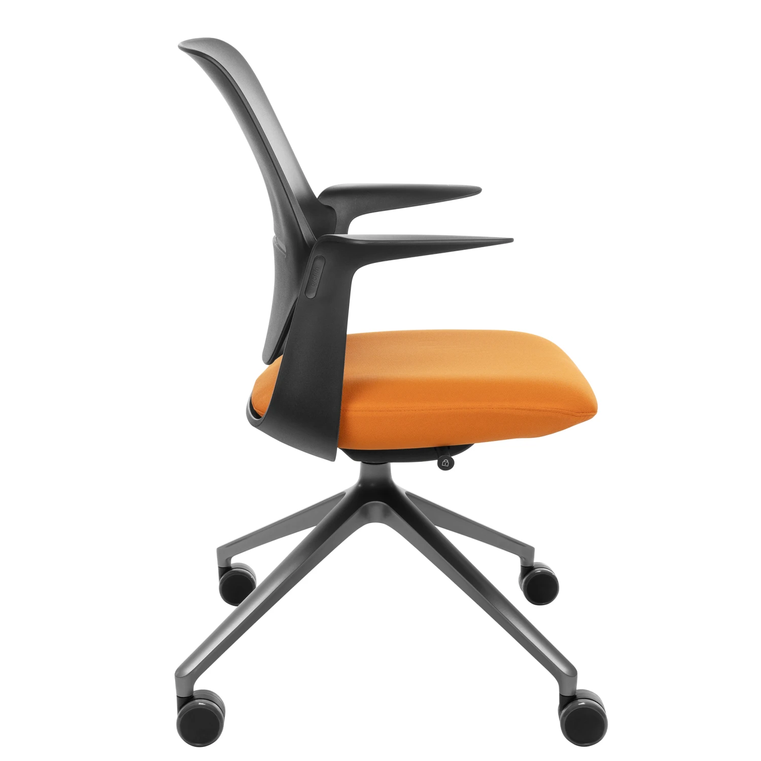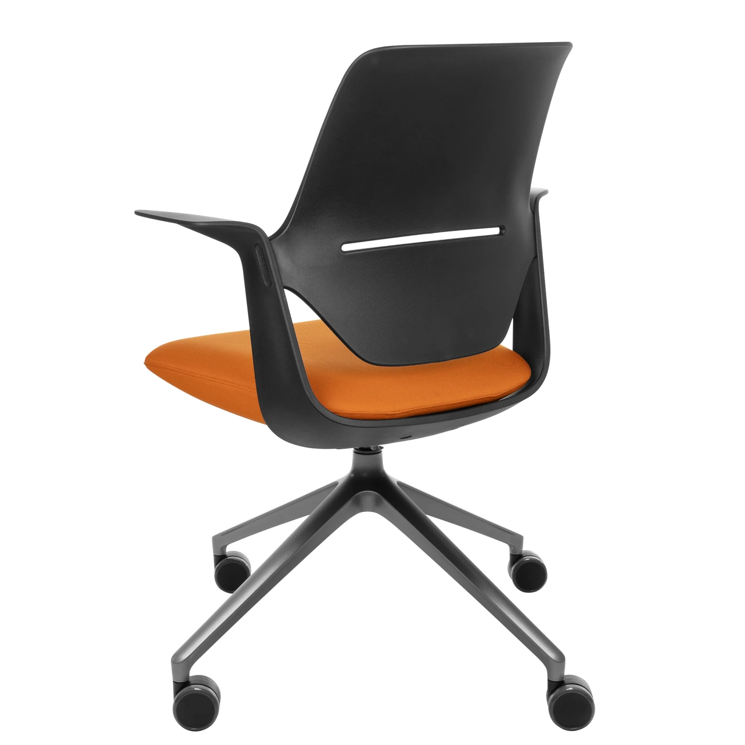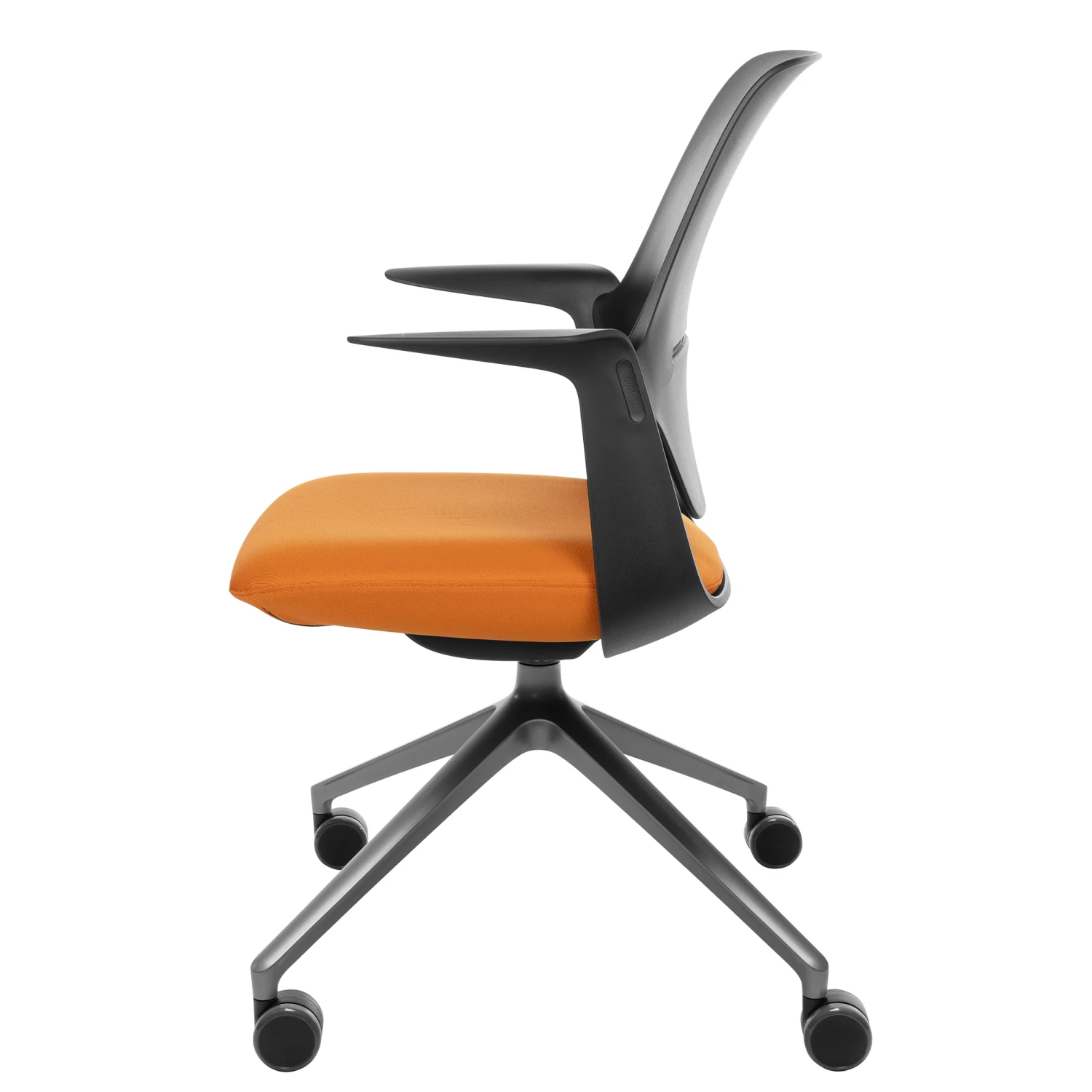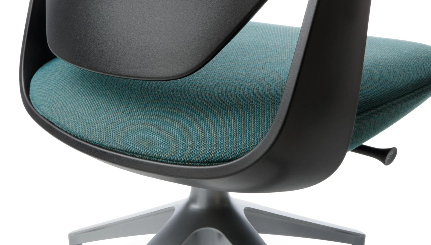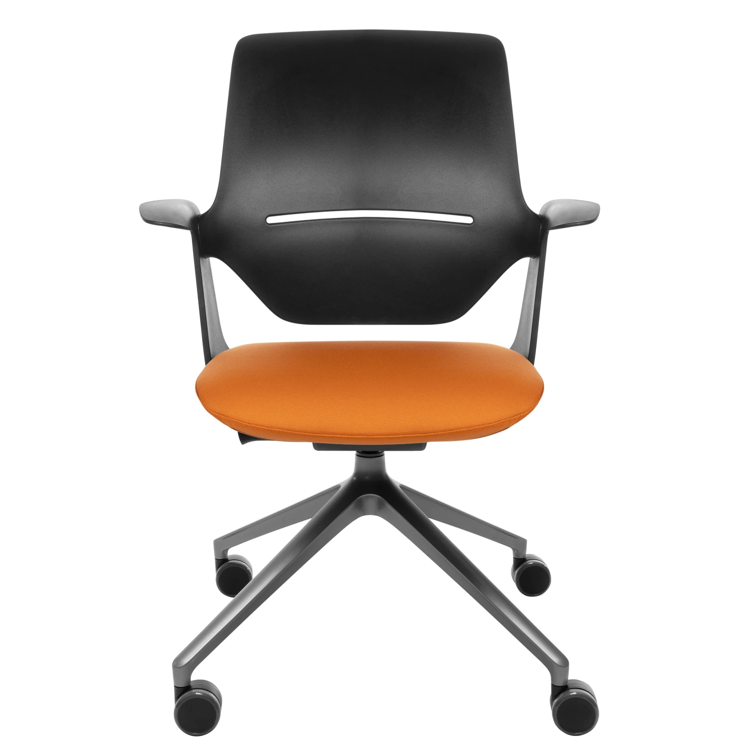 - Ergonomisch geformter Sitz aus schwarzem Polyamid mit fixierten Armlehnen