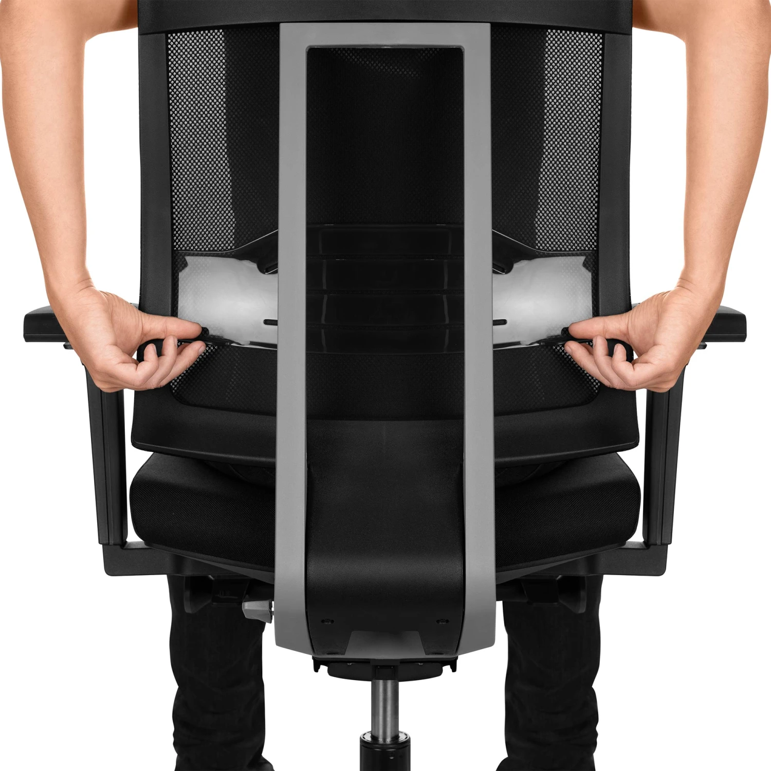 - Farbe: Netzrücken, Sitzbezugsstoff und Fußkreuz in Schwarz