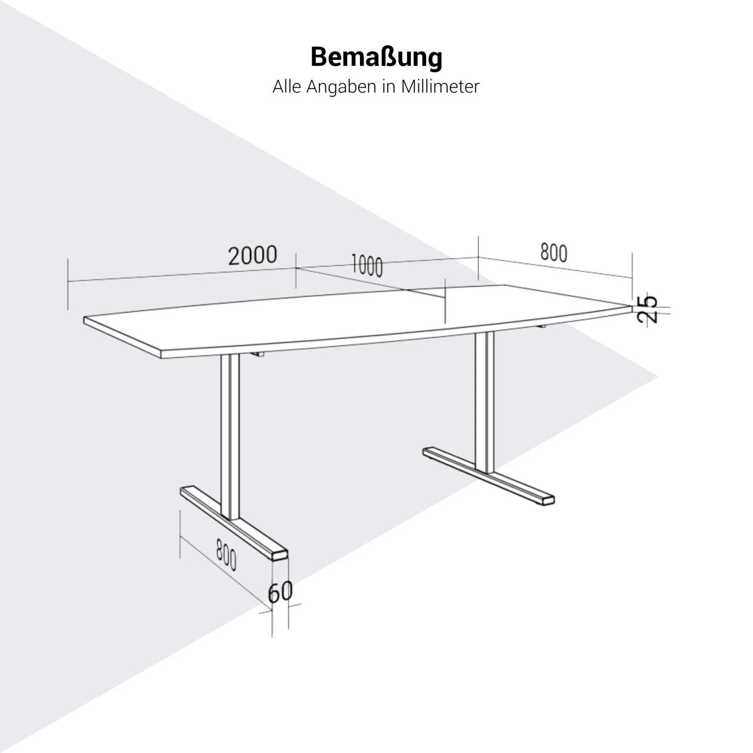 | Materialstärke | Tischplatte 25 mm, Traverse 40 x 20 mm, Beine 80 x 40 mm, Füße 800 x 60 x 30 mm |