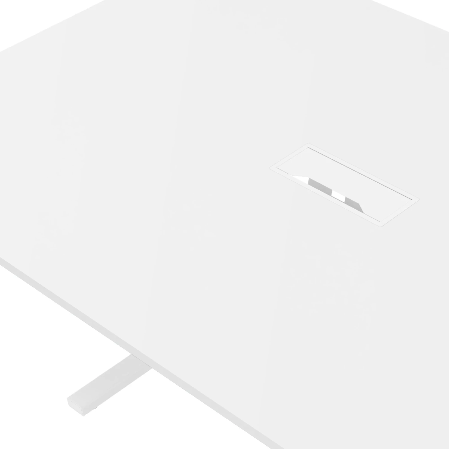 | Materialstärke | Tischplatte 25 mm, Traverse 40 x 20 mm, Beine 40 x 40 mm, Kunststofffüße mit Höhenausgleich (+10 mm), Kabelschacht 317 x 119 x 27 mm, Kabelwanne 360 x 180 x 110 mm |