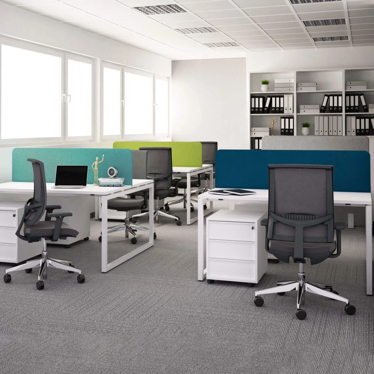 - Hochwertiges, schallabsorbierendes Trennwand-System