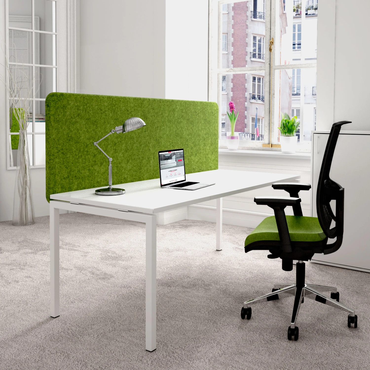 - Hochwertiges, schallabsorbierendes Trennwand-System