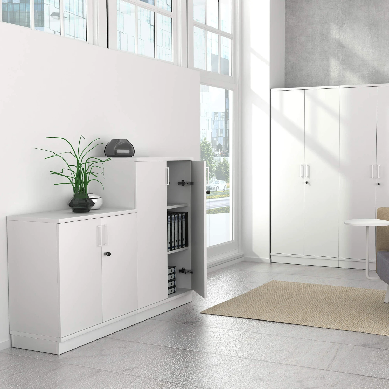 - Kratz- und stoßfeste Melaminharzbeschichtung passend zur Schrankfarbe