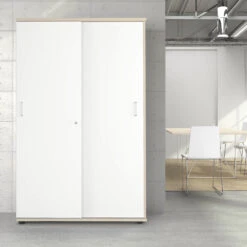 - Abschließbarer Schiebetürenschrank zur idealen Aufbewahrung von Ordnern und Dokumenten