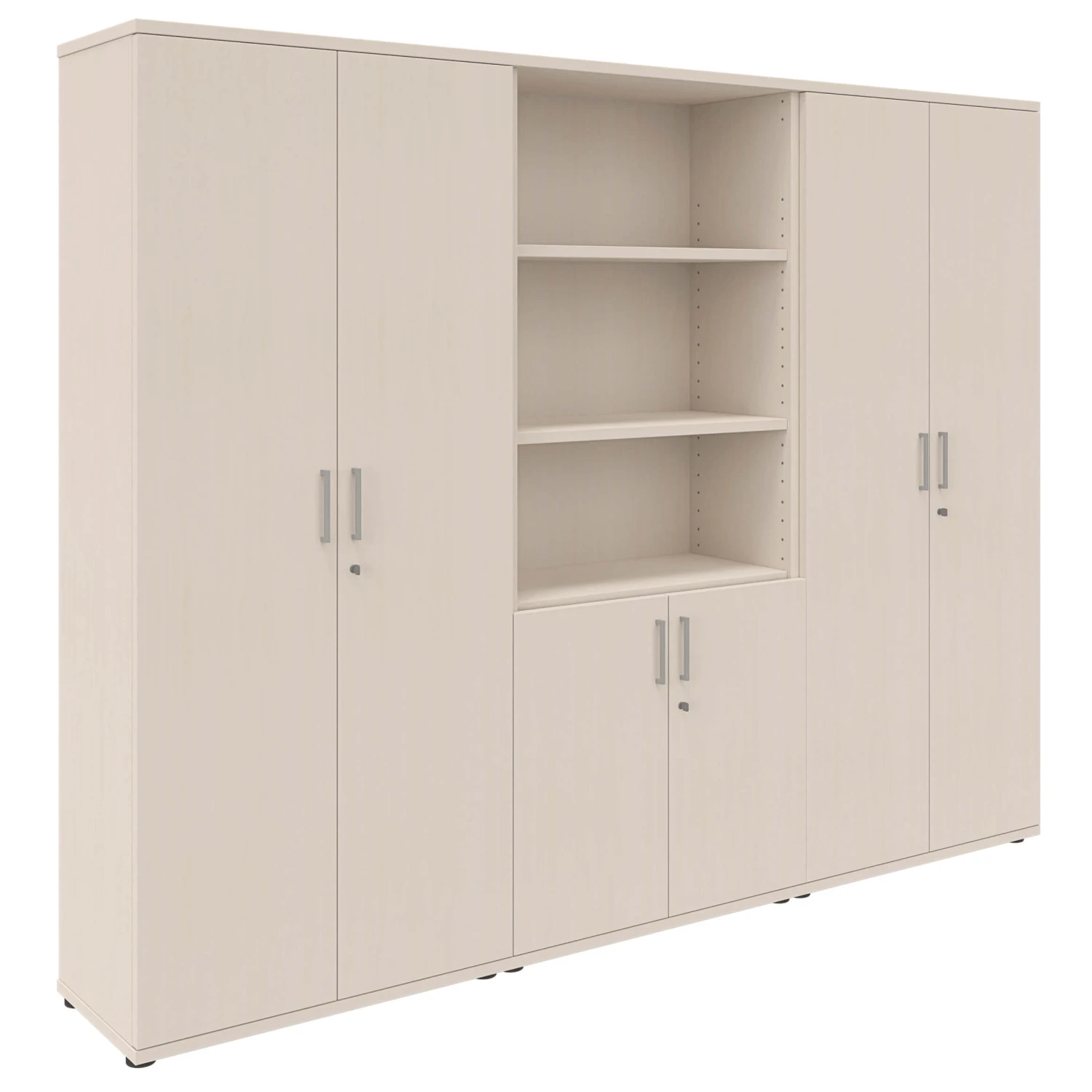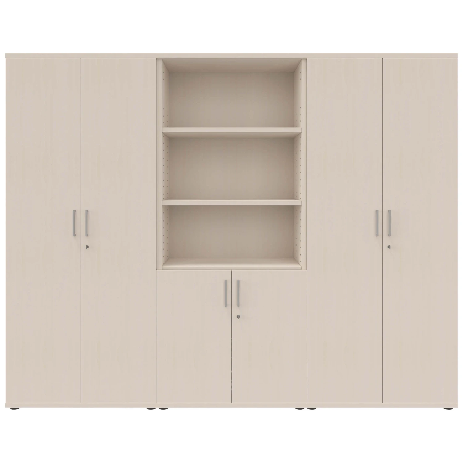 | Set bestehend aus | 2x Flügeltürenschrank: BxTxH 800 x 425 1.897 mm 1x Kombischrank: BxTxH 800 x 425 x 1.897 mm |