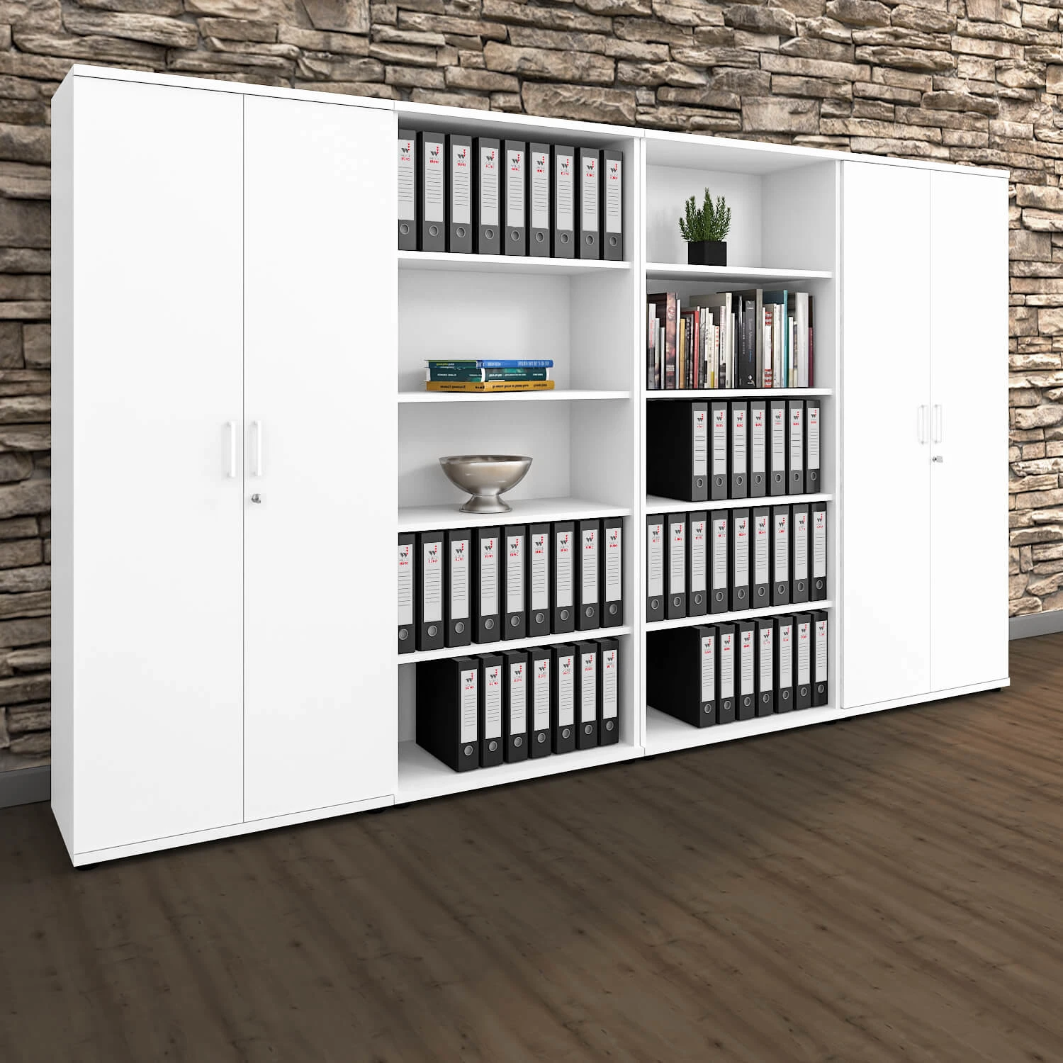 | Set bestehend aus | 2x Flügeltürenschrank: BxTxH 800 x 425 x 1.897 mm 2x Regalschrank: BxTxH 800 x 425 x 1.897 mm |