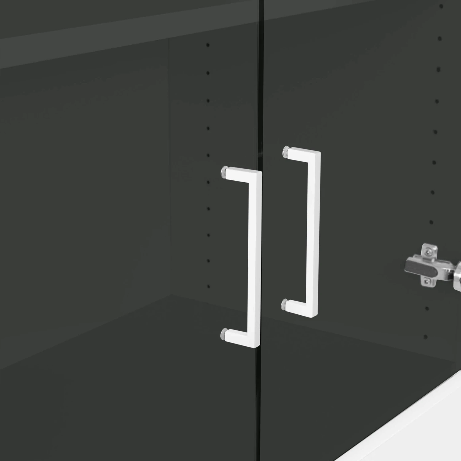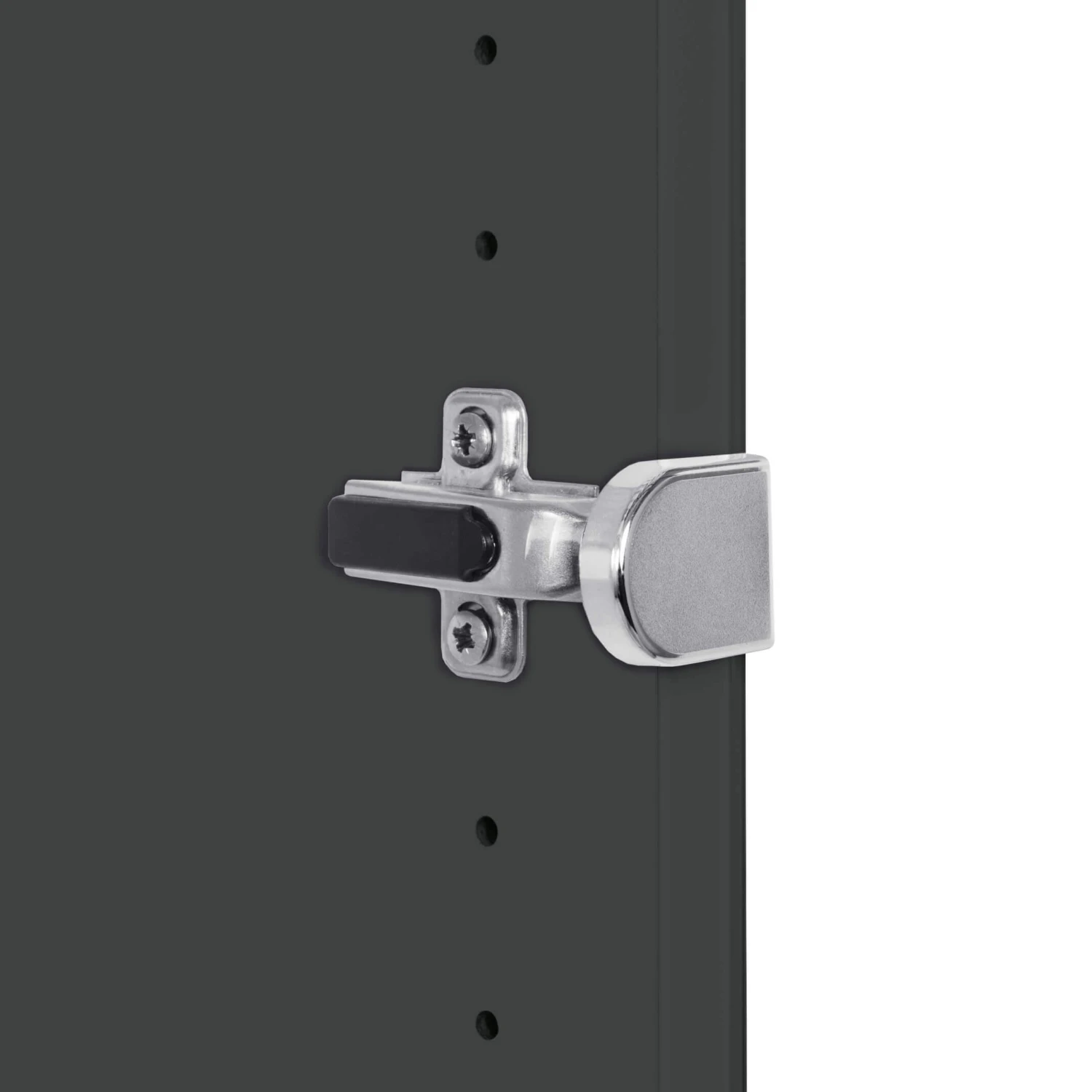 | Ausstattung | 4 Fachböden, durchgängige Lochreihenbohrung 25 mm, Marken-Scharniere von Blum®, Bügelgriffe aus pulverbeschichtetm Metall – 136 mm lang, Öffnungswinkel: 100°, Türen lassen sich einfach und werkzeugfrei über ein Klicksystem montieren |