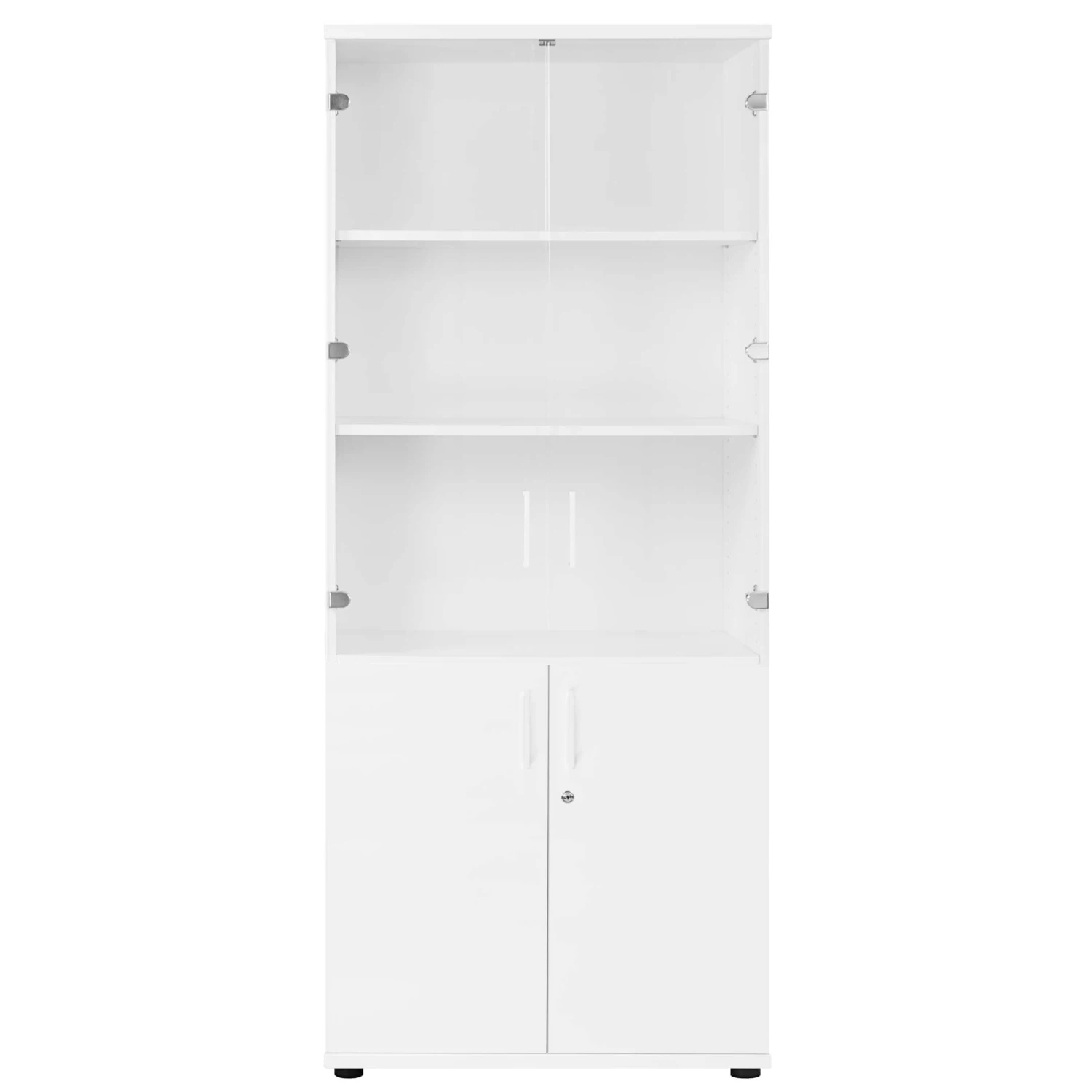 | Ausstattung | 4 Fachböden, durchgängige Lochreihenbohrung 25 mm, Marken-Scharniere von Blum®, Bügelgriffe aus pulverbeschichtetm Metall – 136 mm lang, Öffnungswinkel: 100°, Türen lassen sich einfach und werkzeugfrei über ein Klicksystem montieren |