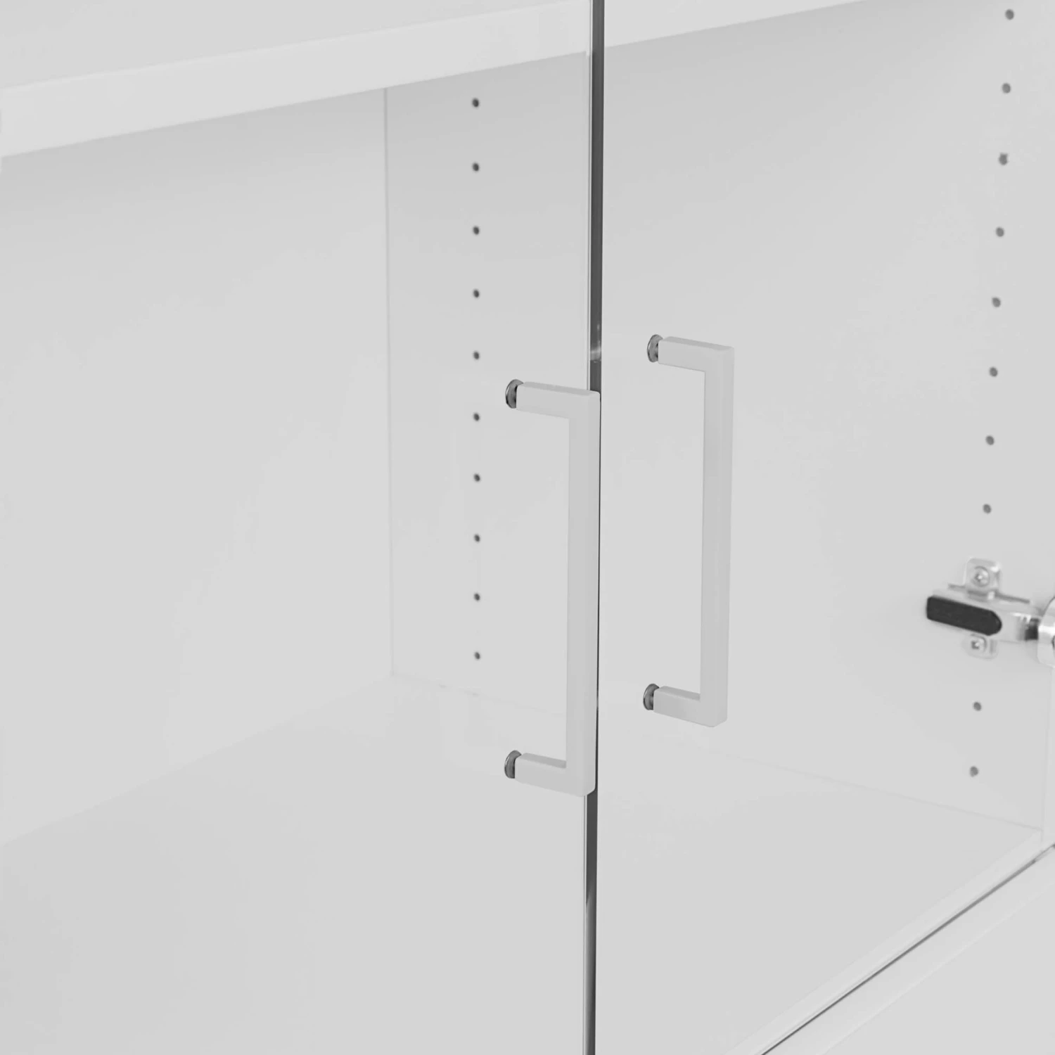 | Ausstattung | 2 Fachböden, 2 Schubladen mit Hängeregister, durchgängige Lochreihenbohrung 25 mm, Bügelgriffe aus pulverbeschichtetm Metall – 136 mm lang |