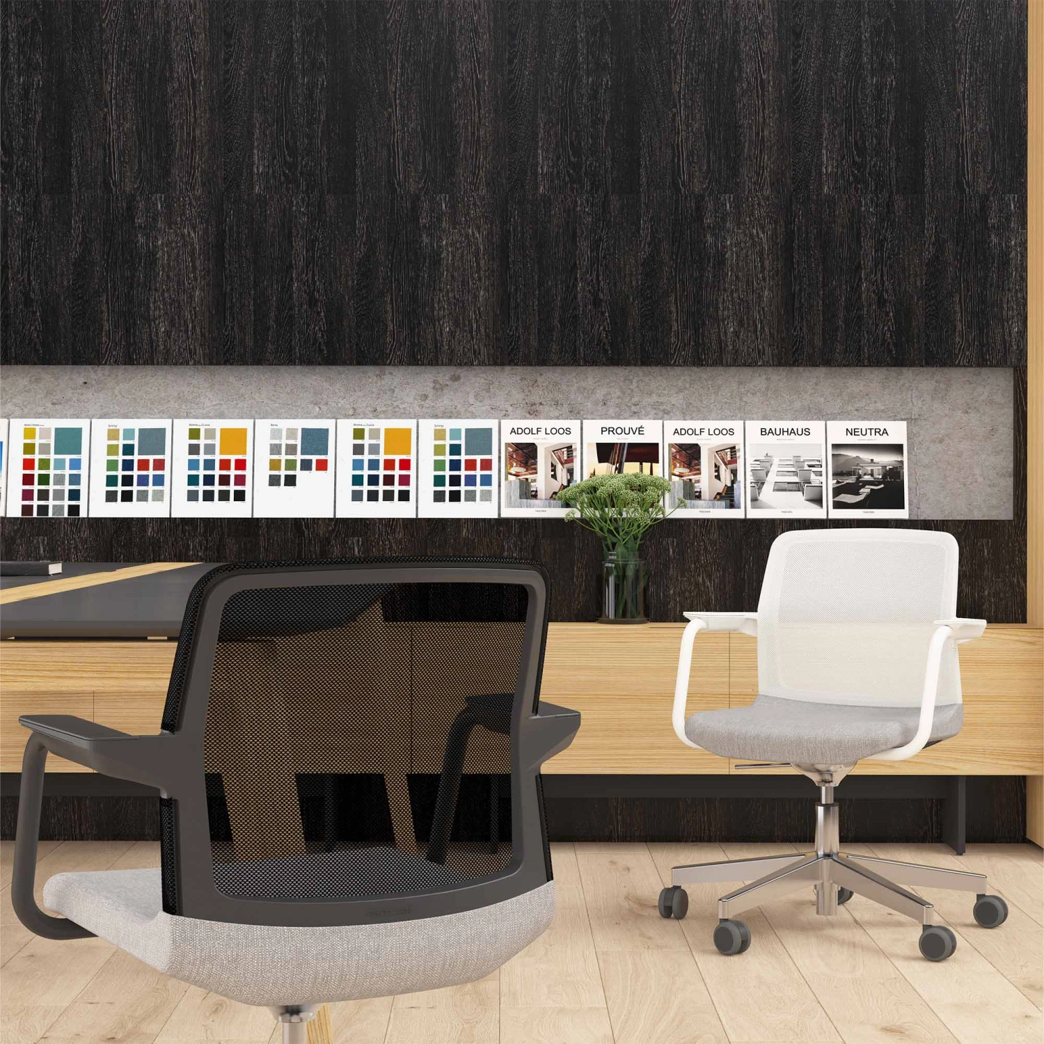 - Moderne Armlehnen und Rahmen in schwarzem Kunststoff-Design